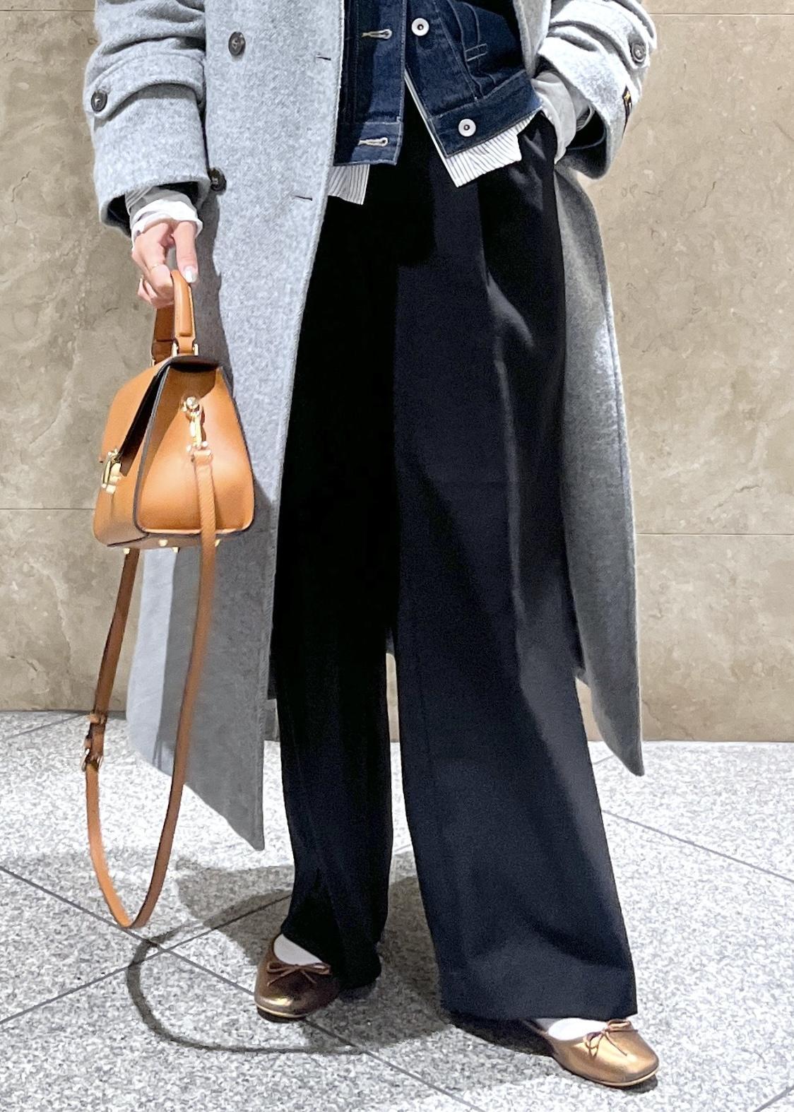 どんなトップス、シーンにもマッチする、そして長く着られるサラっとした素材感なので、かなり重宝しそう、、! -