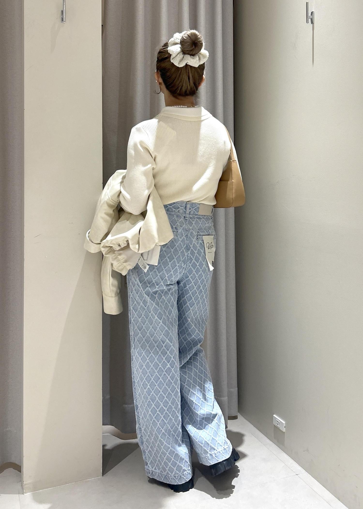 VISダブルカラーポロニットトップスオフホワイト / F¥5,489レビューぴたっとしてますが、体型を拾いにくく着やすいです◎