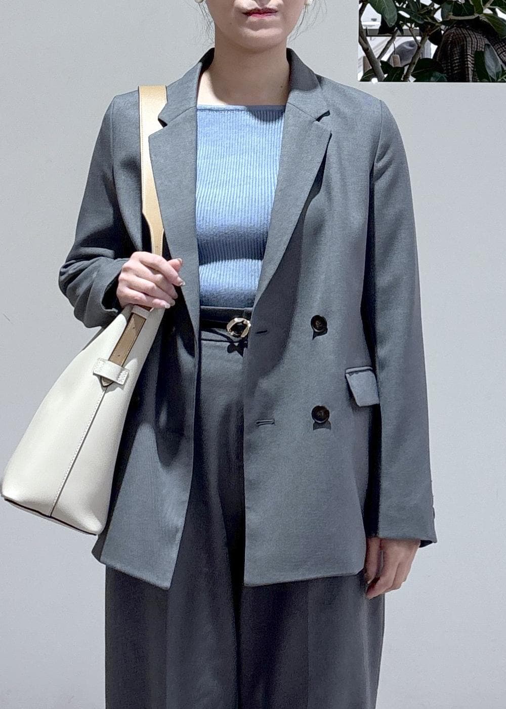 VIS美easyウーリッシュダブルブレストテーラードジャケット【セットアップ対応/洗える】グレー / S¥8,899レビュー上品な印象のジャケットですが、オーバーサイズでカジュアルなスタイリングも楽しめます。