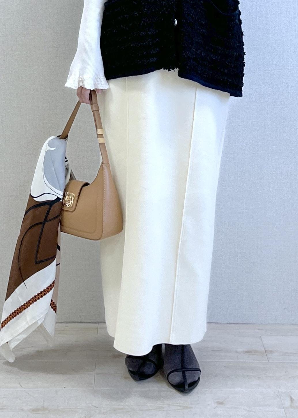 VISピンタックデザインニットスカートオフホワイト / F¥5,929レビュー152cmでFサイズ着用し、着丈は足首が少し見えるくらいの長め丈。収縮性のあるニットスカートでとっても楽ちん♡広がりすぎないすっきりIラインがとってもキレイです。フィットしすぎずウエストはやや緩めでしたが、腰でとまるので落ちてくる心配はありませんでした。こちらのスカートはリアルバイです!