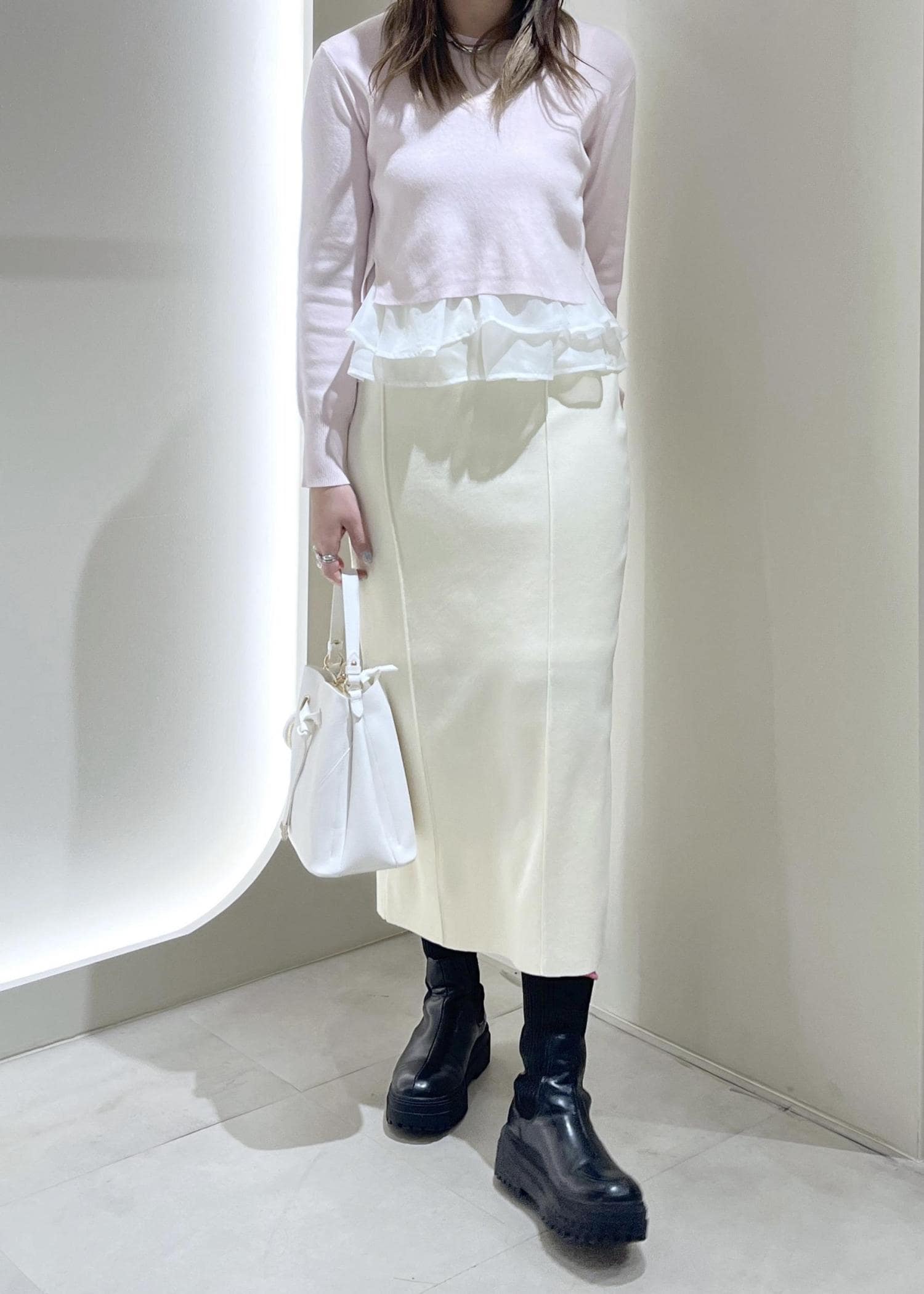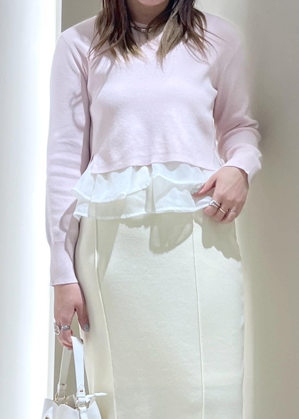 【美得】ペプラムオーガンジードッキングニットプルオーバー