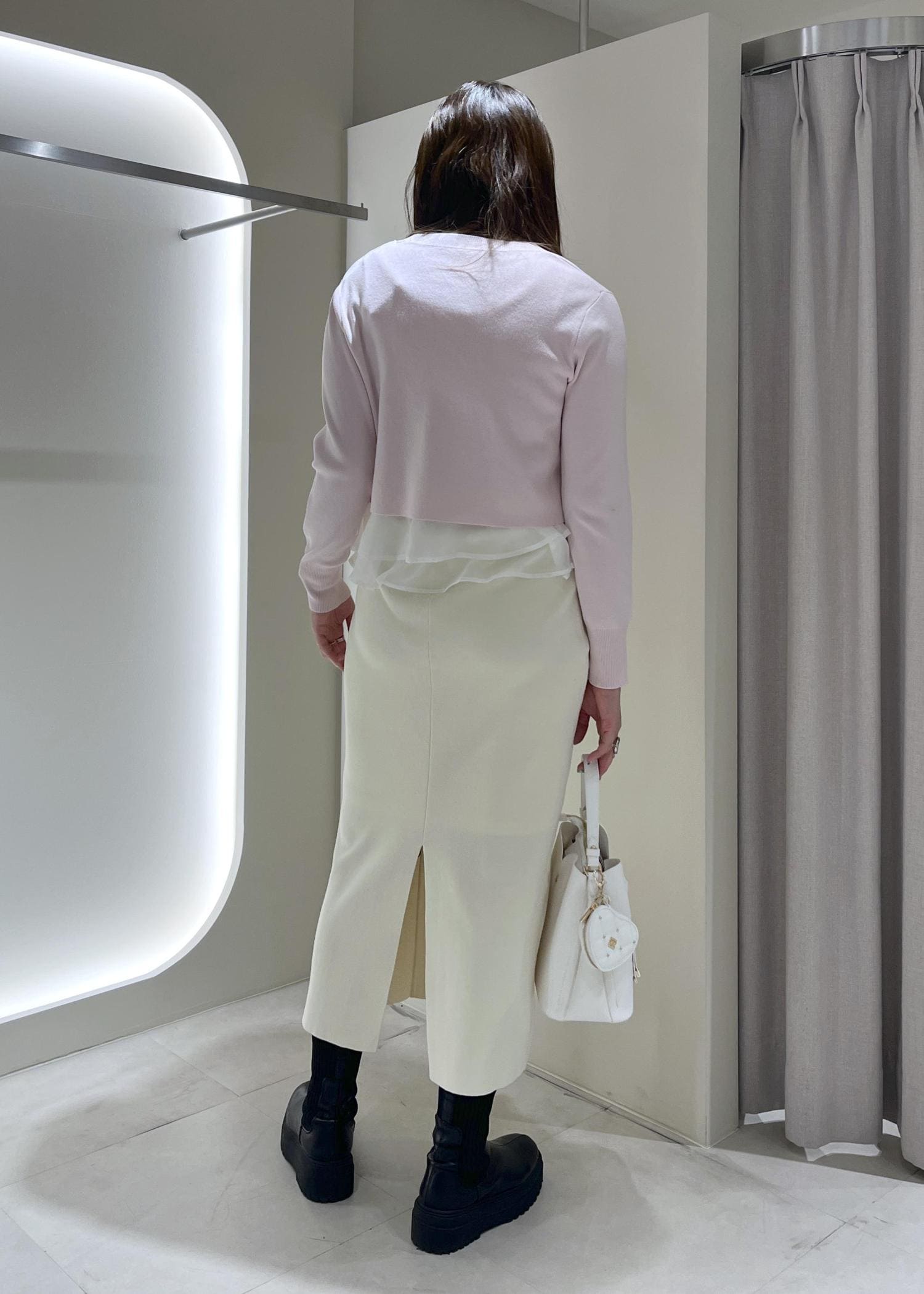 女性らしいオーガンジードッキングで1枚でも着映えする!スッキリとした着丈でボトムも選ばず合わせやすいのも嬉しいポイント!
