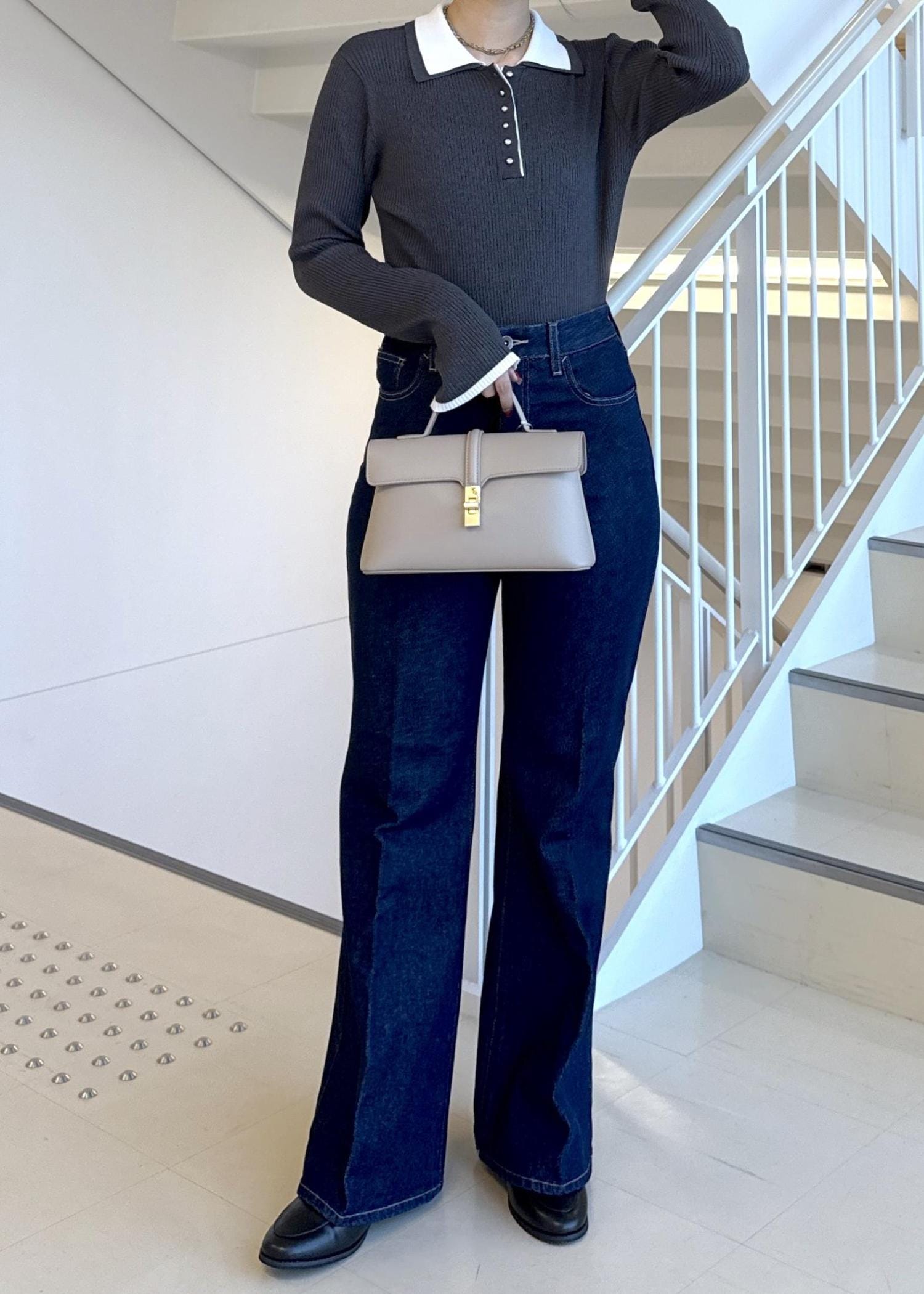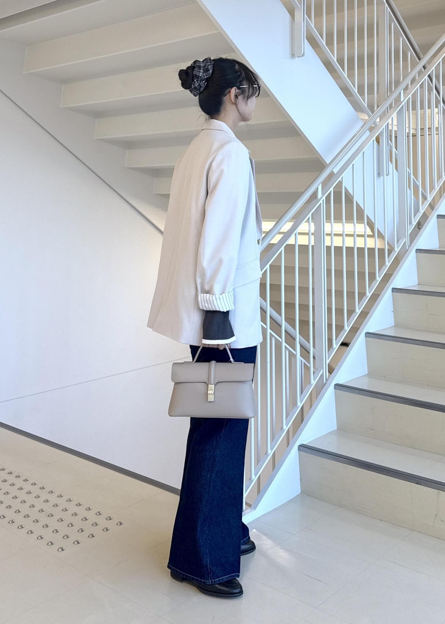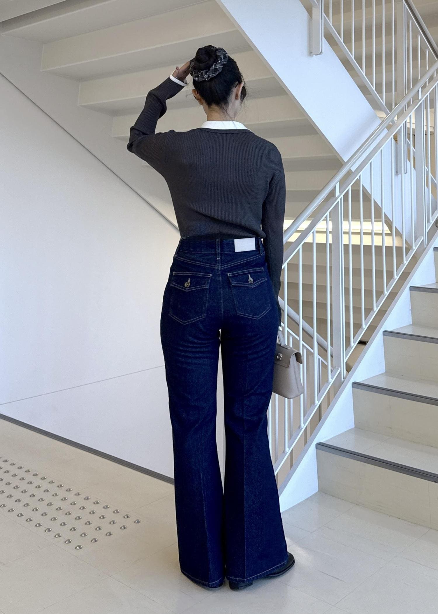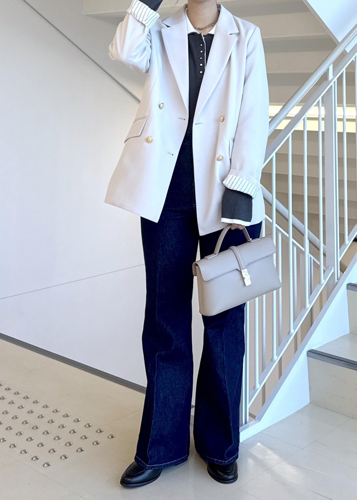 デニムはフレアパンツにして、キレイめに少し寄せました。デニムでもキレイめに着たいときは、フレアシルエットがオススメです♪