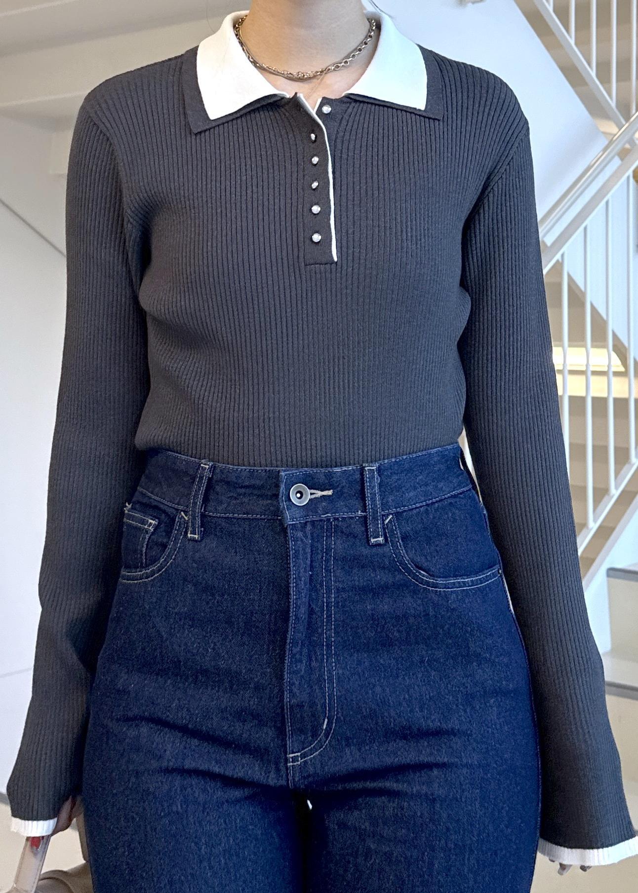 VISダブルカラーポロニットトップスチャコール / F¥5,489レビュー薄めの生地感で、春でも1枚で着れます。