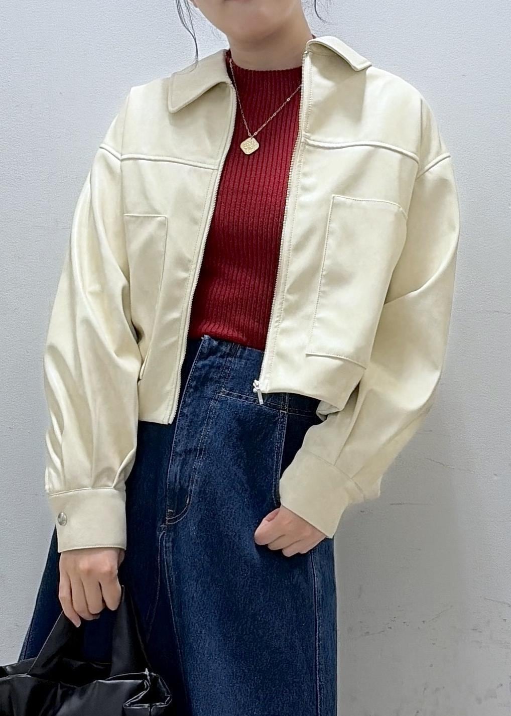 VISアウトポケット合皮ブルゾンクリーム / F¥10,989レビュー柔らかい合皮素材のブルゾン!
