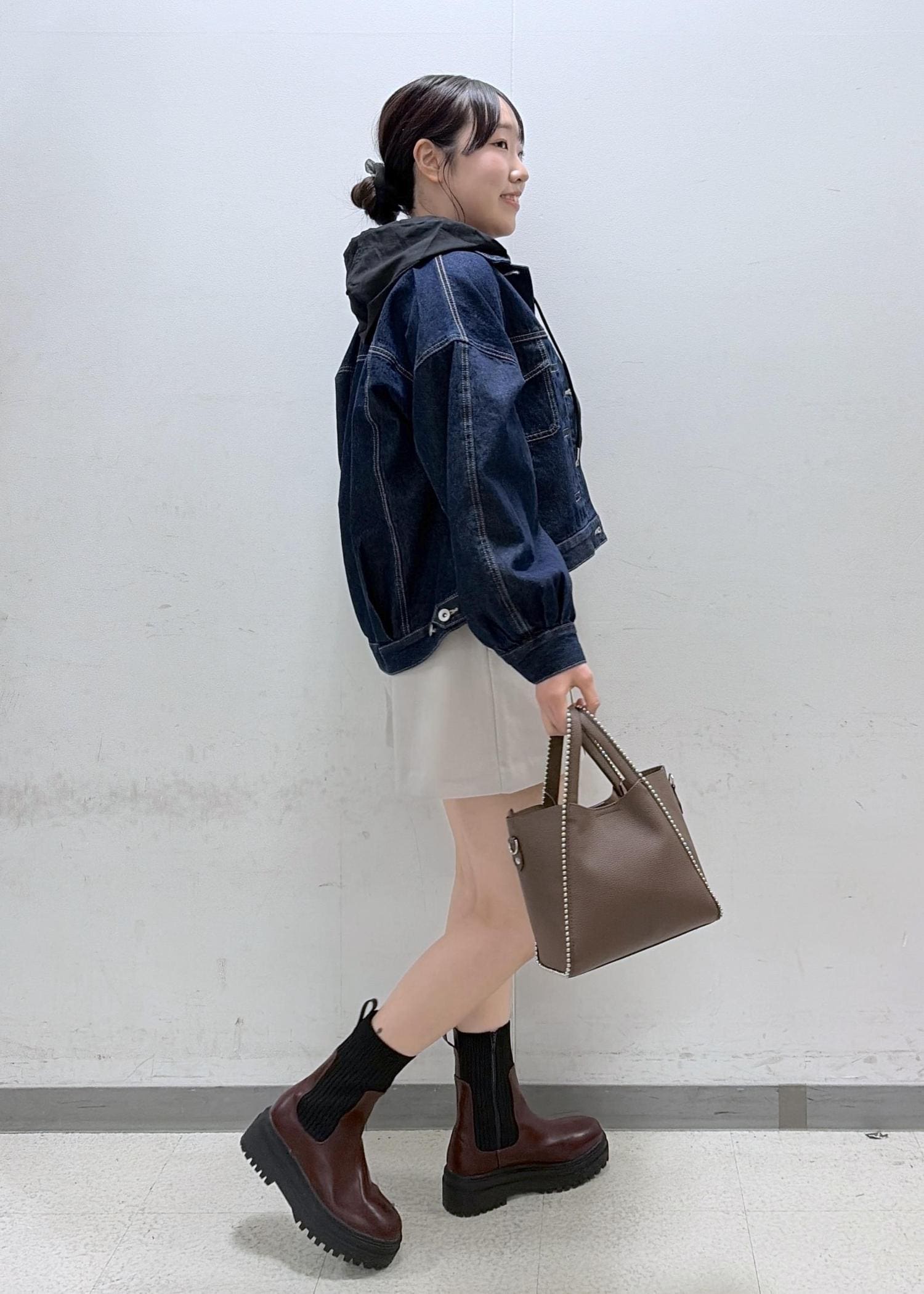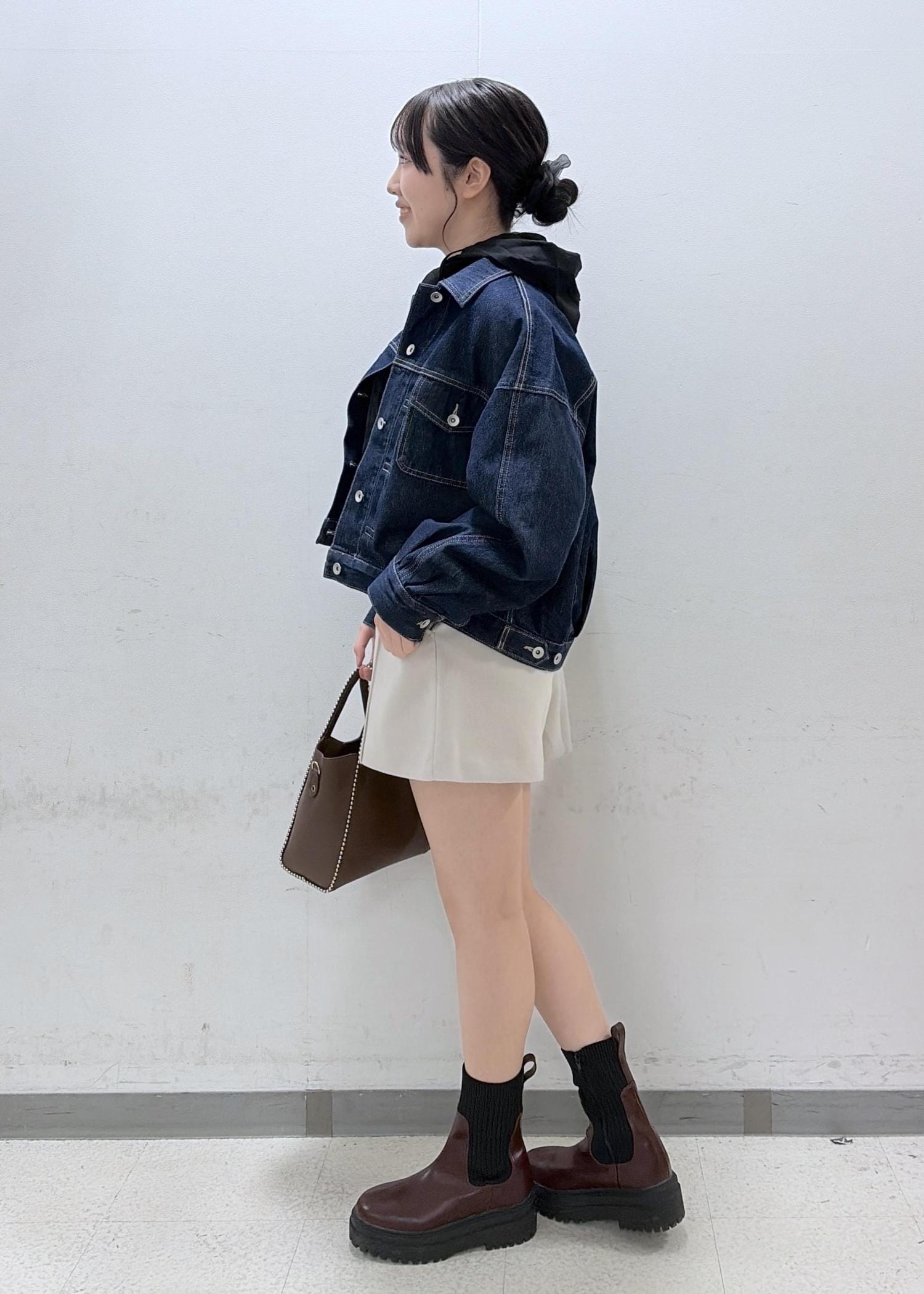 横のボタンでシルエット調節出来るのでお洋服に合わせて変えることもできます! -