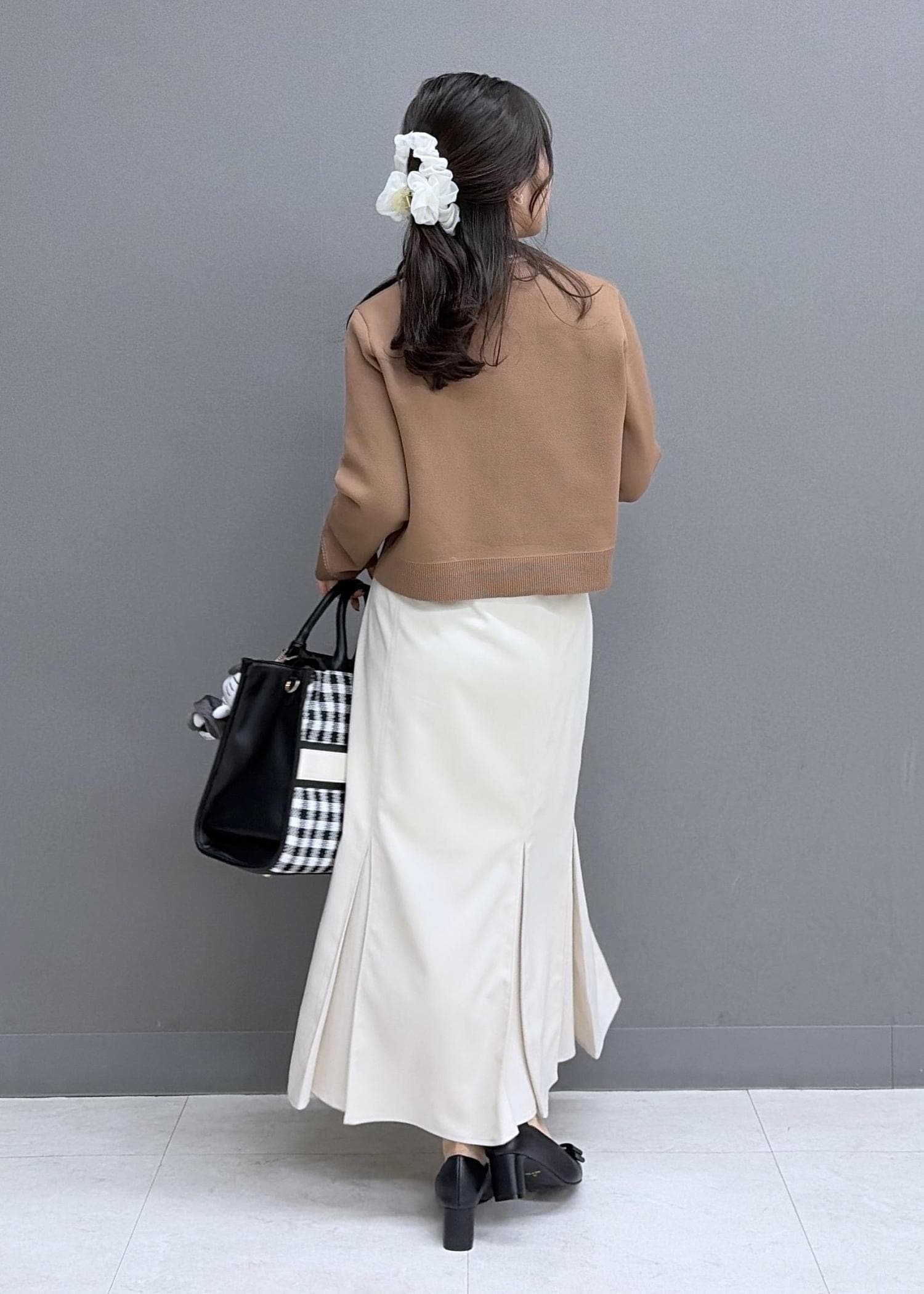VISボックスプリーツマーメイドスカート/イージーケア・防シワベージュ / S¥6,589レビュー153センチSサイズ着用。