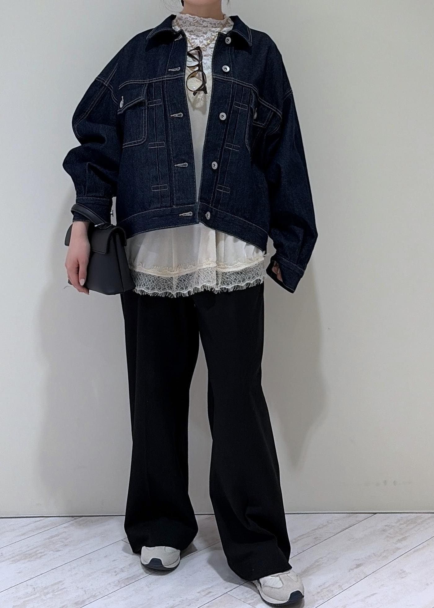 襟元も大きく広げて着用すると低身長でもシルエット綺麗にバランスよく着用できました◎ -