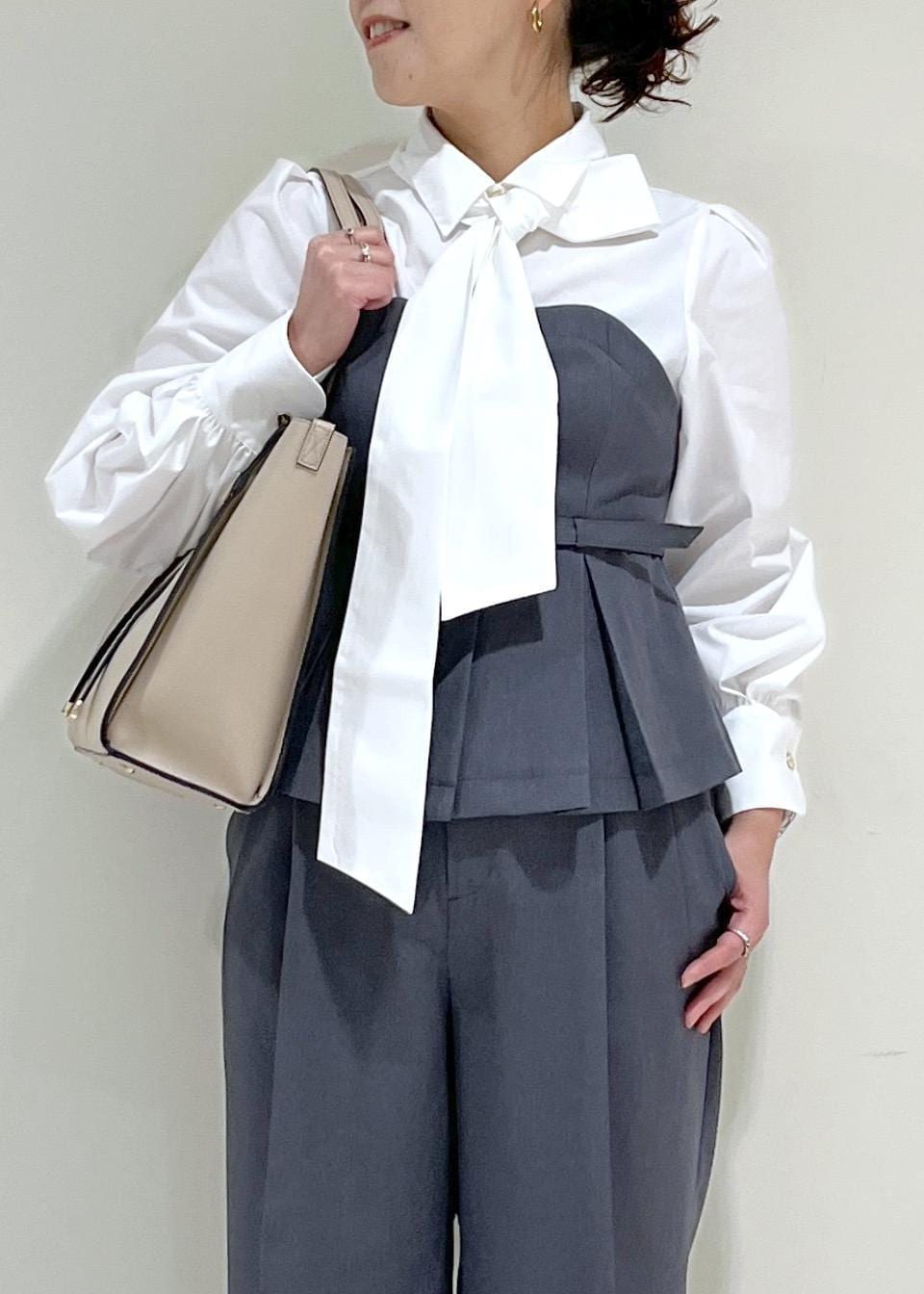 VIS【美easy】コンフォートボウタイドッキングシャツ/イージーケア・2WAYグレー / F¥6,589レビューシャツとビスチェがドッキングされて着映えのするシャツです。