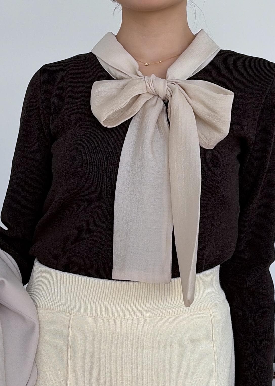 NEW! 予約VISバイカラーリボンドッキングニットチャコール / F¥6,589レビューバイカラーがかわいい。リボンが華やかなトップス。