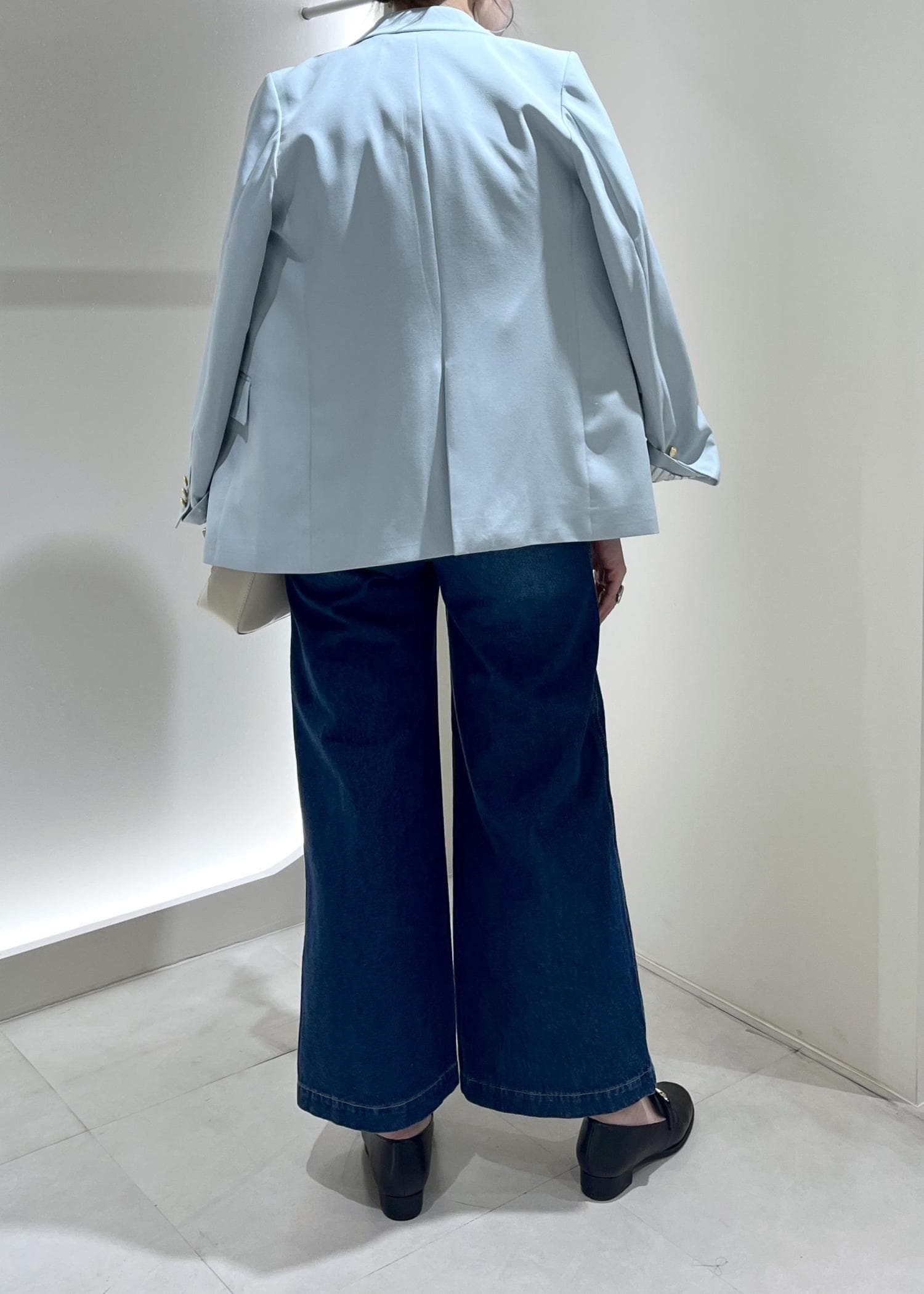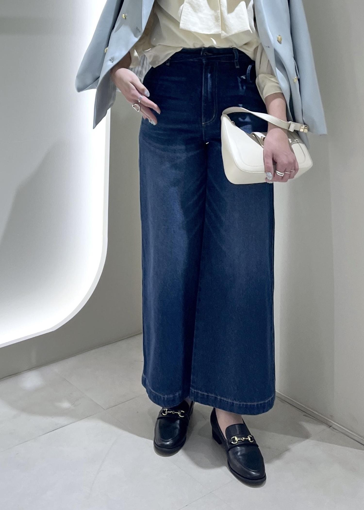 VISベルト付きワイドシルエットデニムパンツブルー / M¥8,899レビュー共布の紐ベルトがポイントに!色違いのジャガードデザインも着映えしますよ!高身長で足首が見える丈感なので少し短いです。