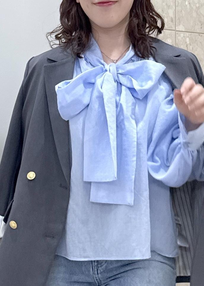 VIS前後2WAYボリュームボウタイブラウス/イージーケアサックス / F¥5,929レビュー前後2wayで着れるブラウス!
