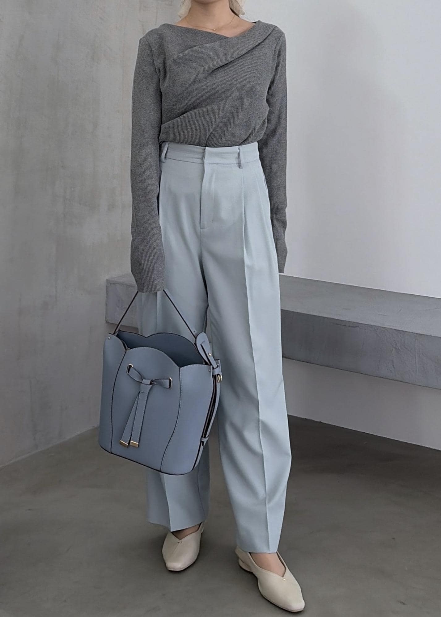 VIS【美得】ドレープオフショルダーリブニット/イージーケアグレー / F¥4,389レビュードレープデザインがシンプル合わせのコーディネートでも目を引くアイテム