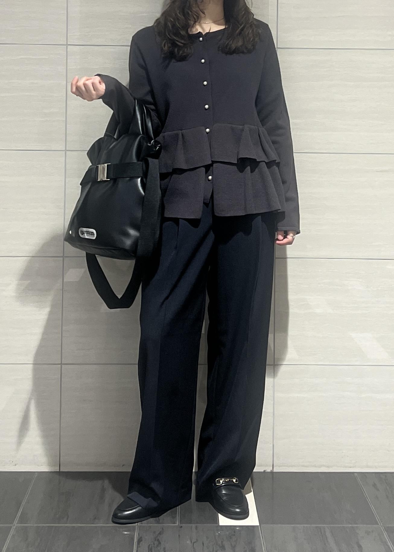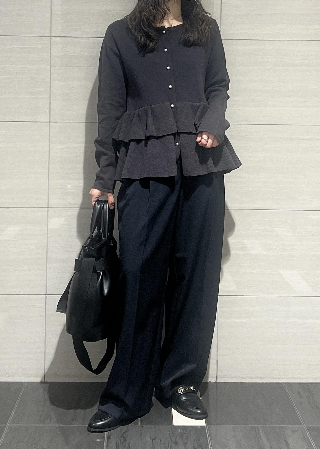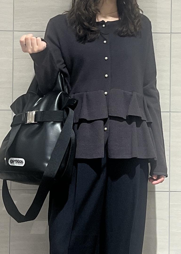 VISティアードペプラムニットカーディガンチャコール / F¥6,589レビューティアードのデザインが可愛く、腰回りをカバーしてくれるのが嬉しいポイント✨ストレッチのきいたニット素材で着心地が良いです!