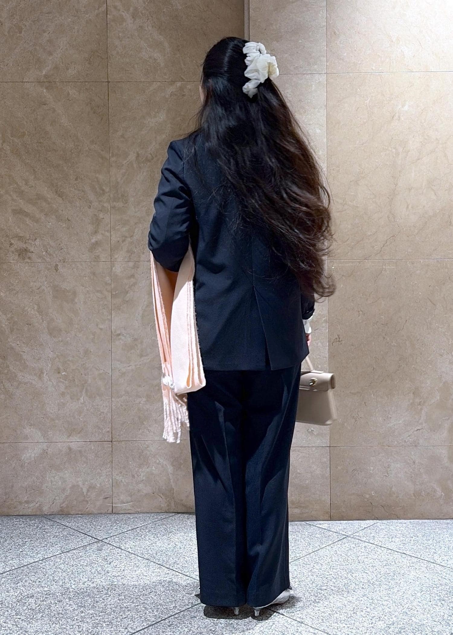 ウーリッシュより少し生地感が軽めのものになっていて丈感も1cm短い仕様です◎ -