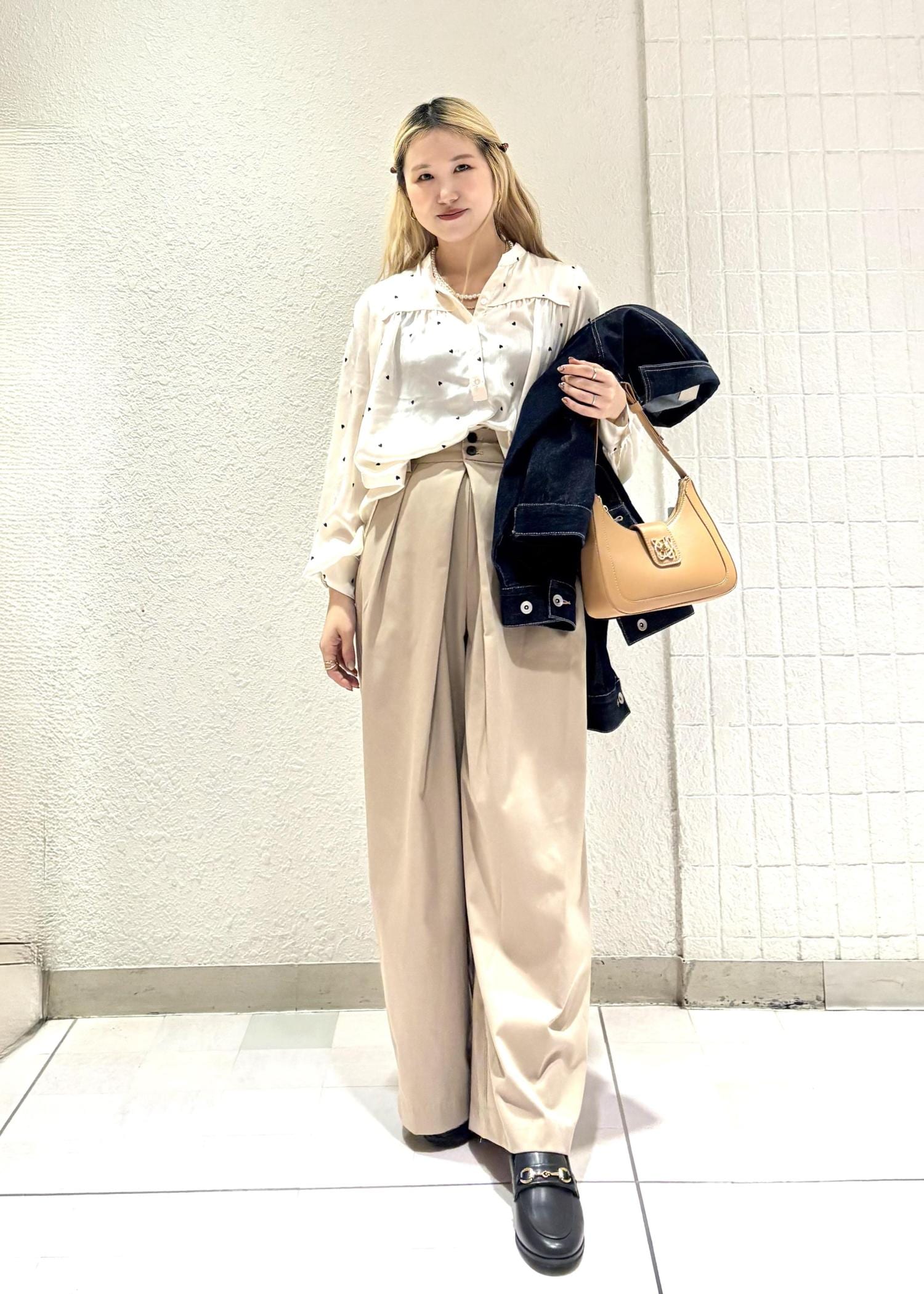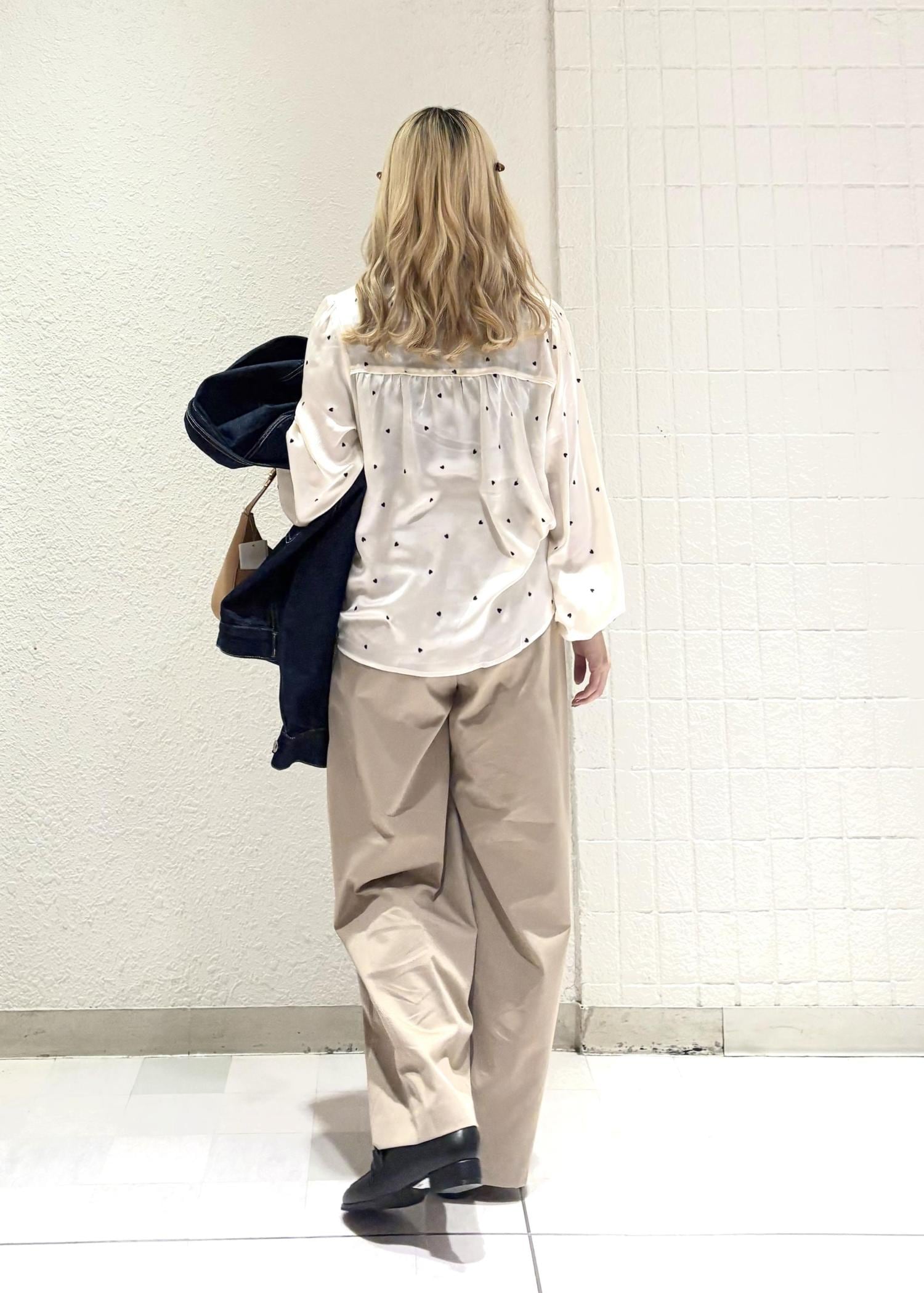 ウエストのタック部分がボトムに程よくボリュームを出してくれて体型カバーになります。 -