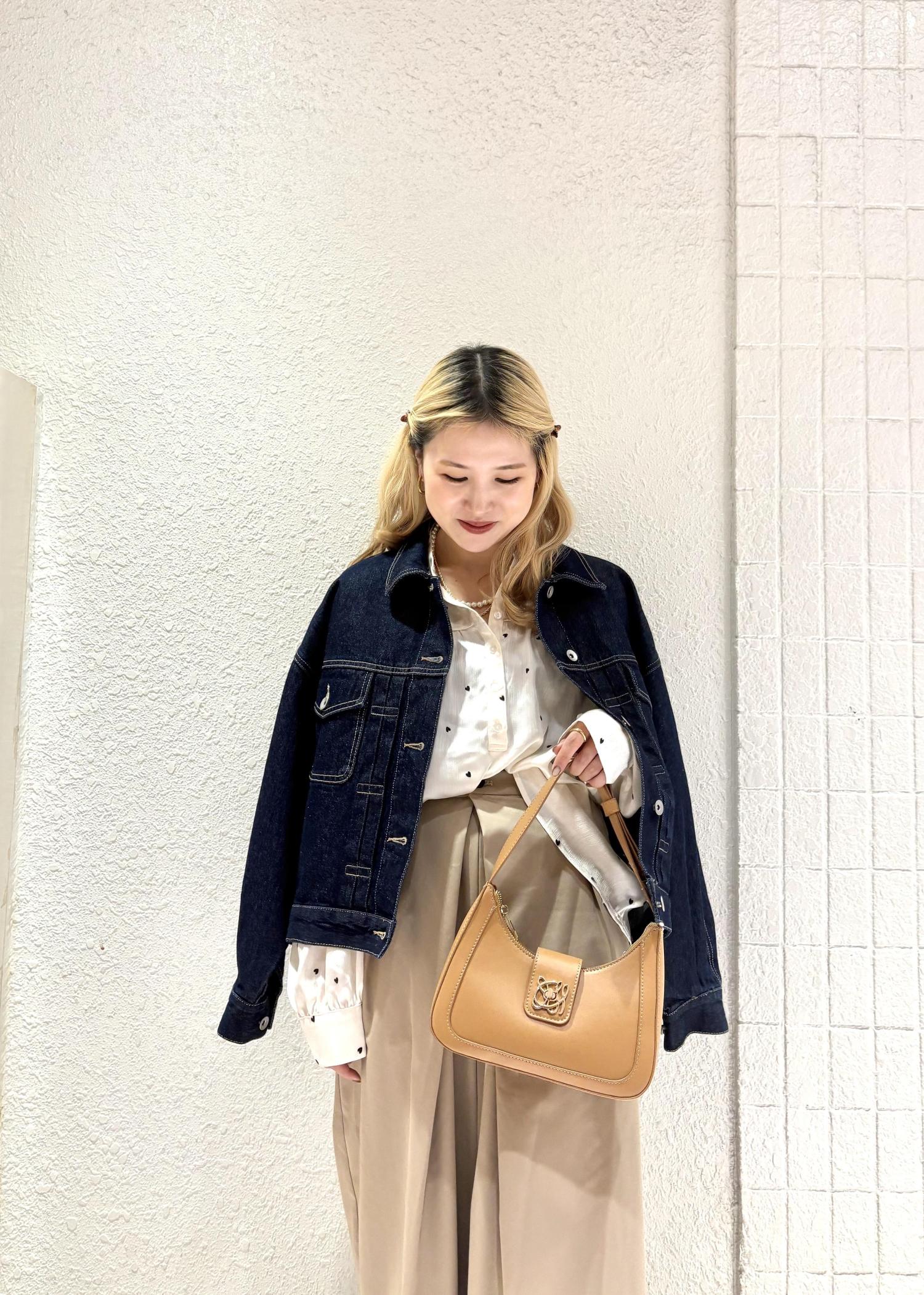 VISボリュームスリーブデニムジャケットネイビー / F¥9,999レビュー短丈なので152cmの低身長でもバランス良く羽織れます。