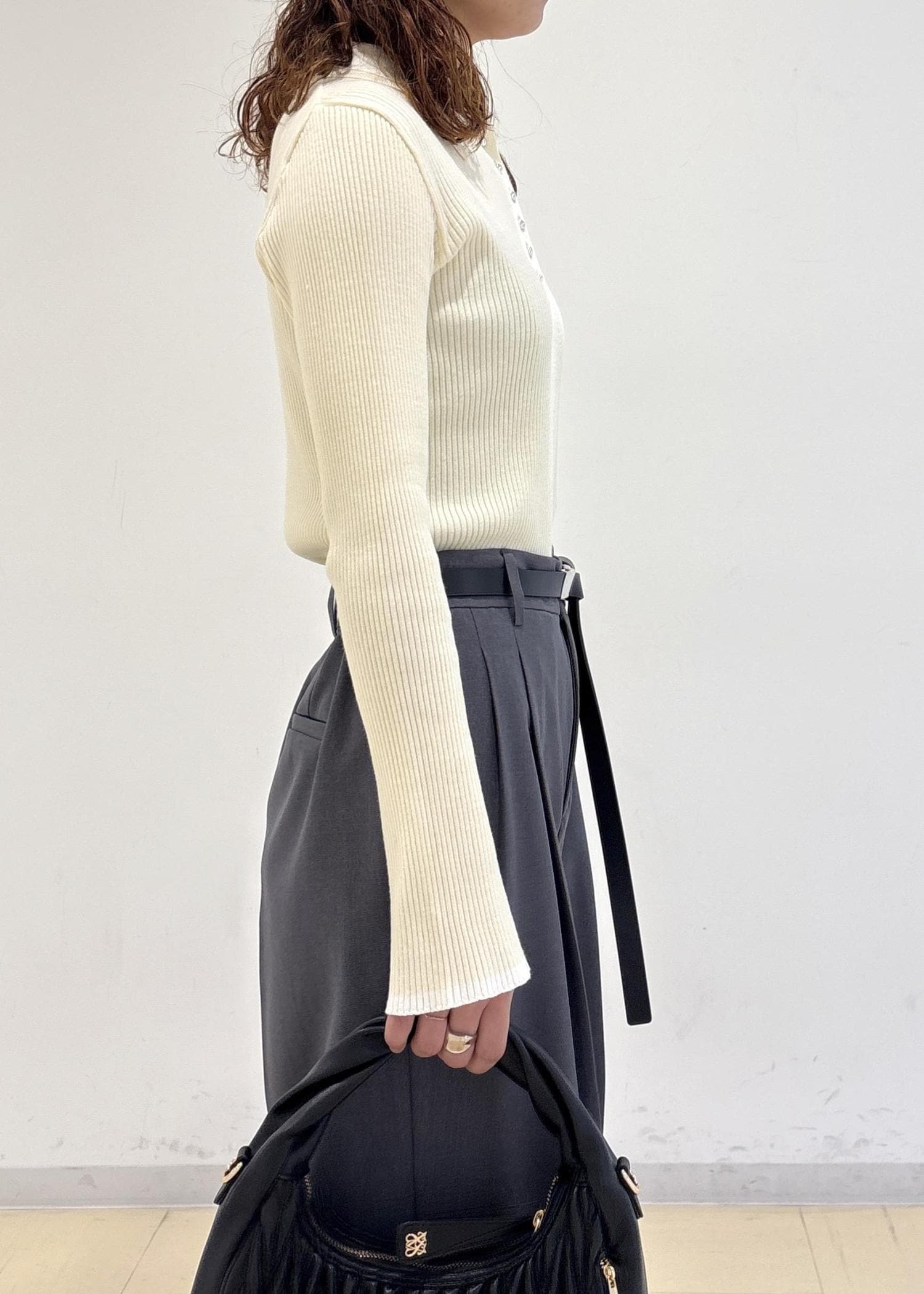 ポロ襟ニットはホワイトにし女性らしさも残してみました!