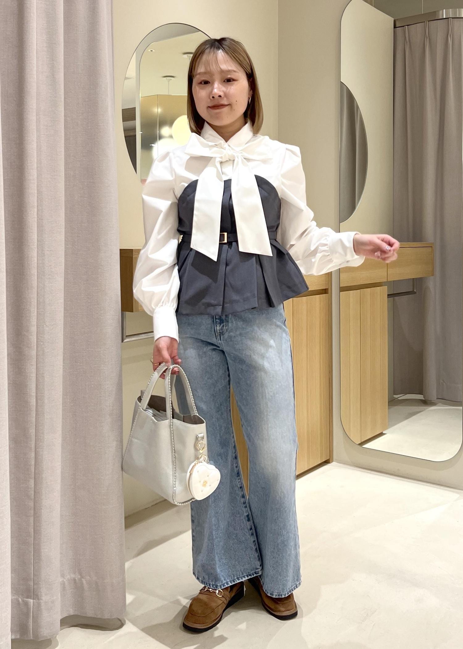 淡色のデニムを合わせて、カジュアルさをプラスしました。