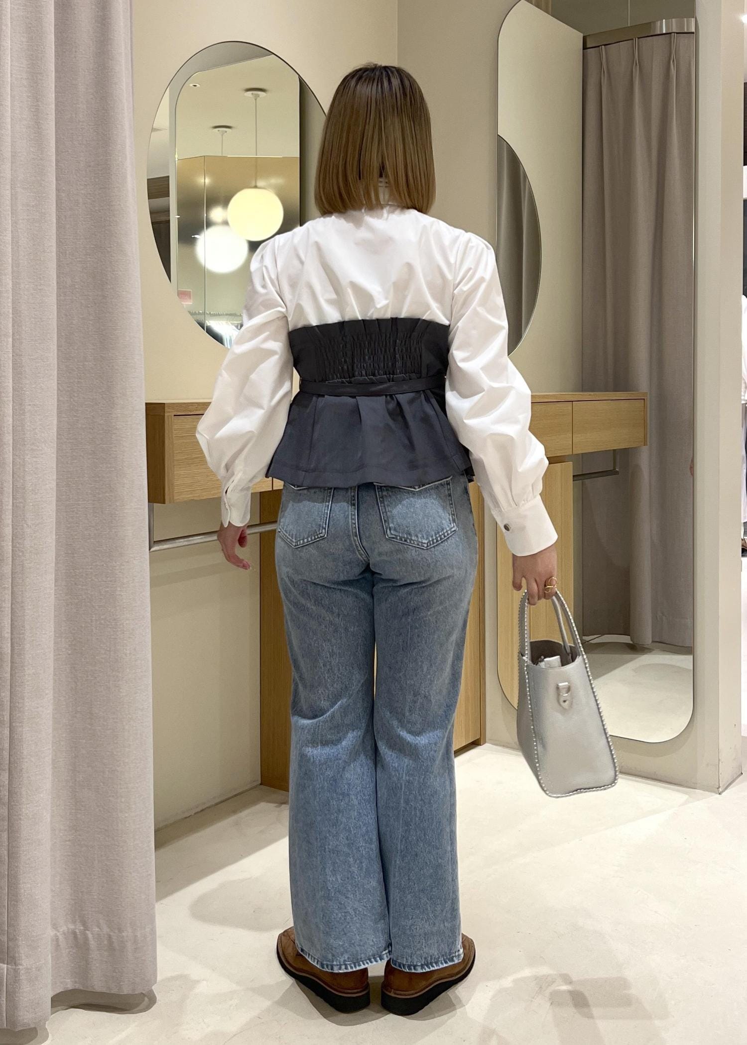 パフスリーブとペプラムでフェミニンカジュアル
