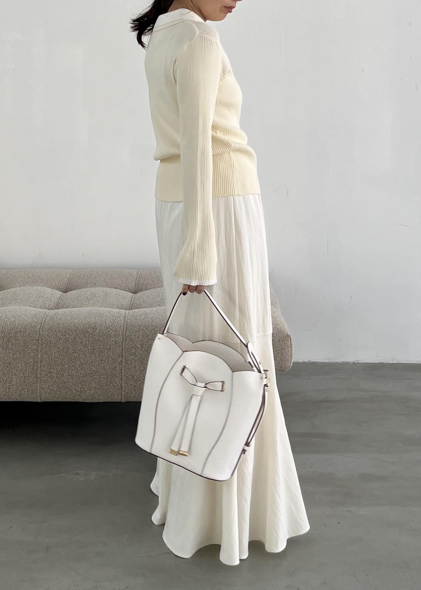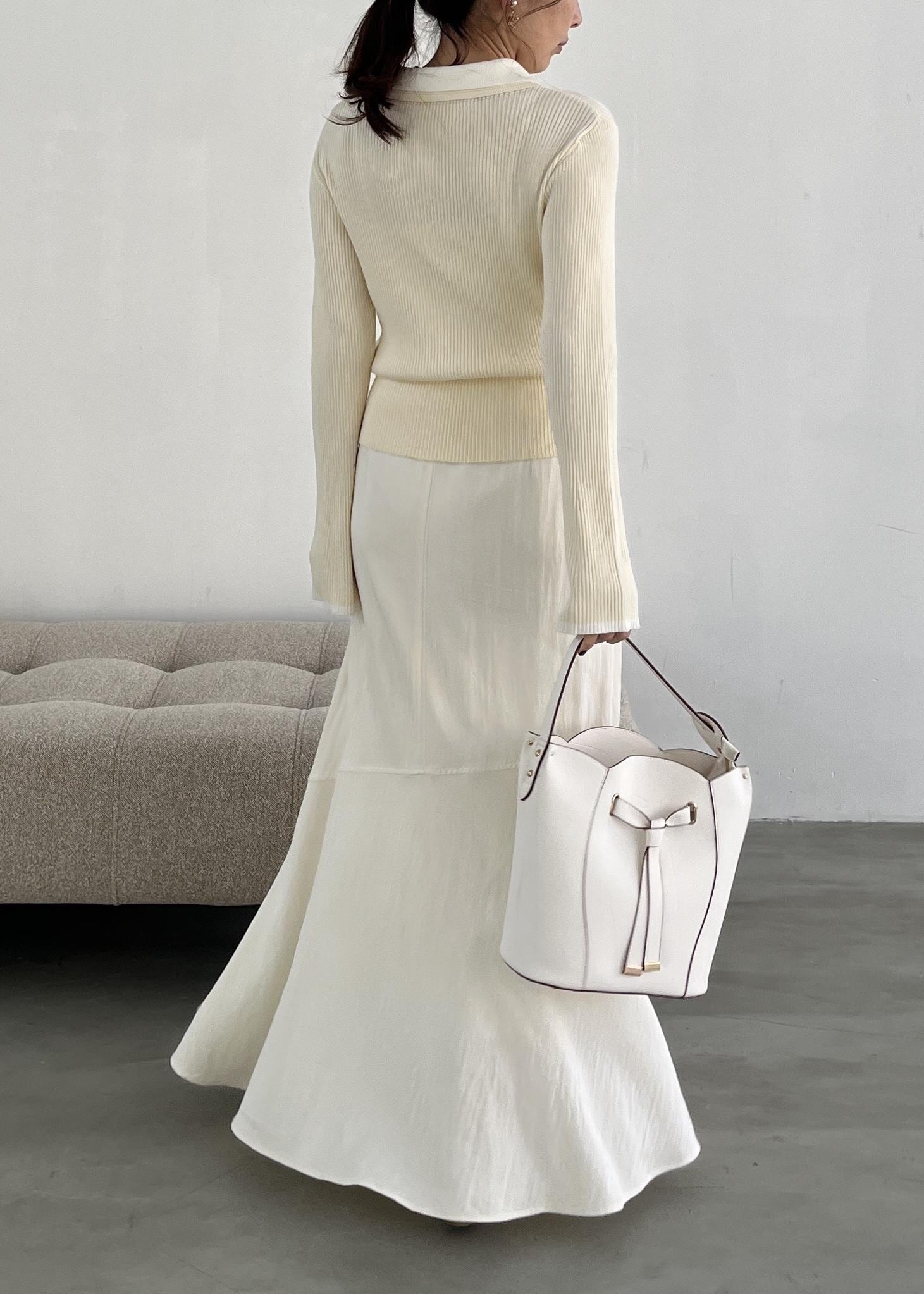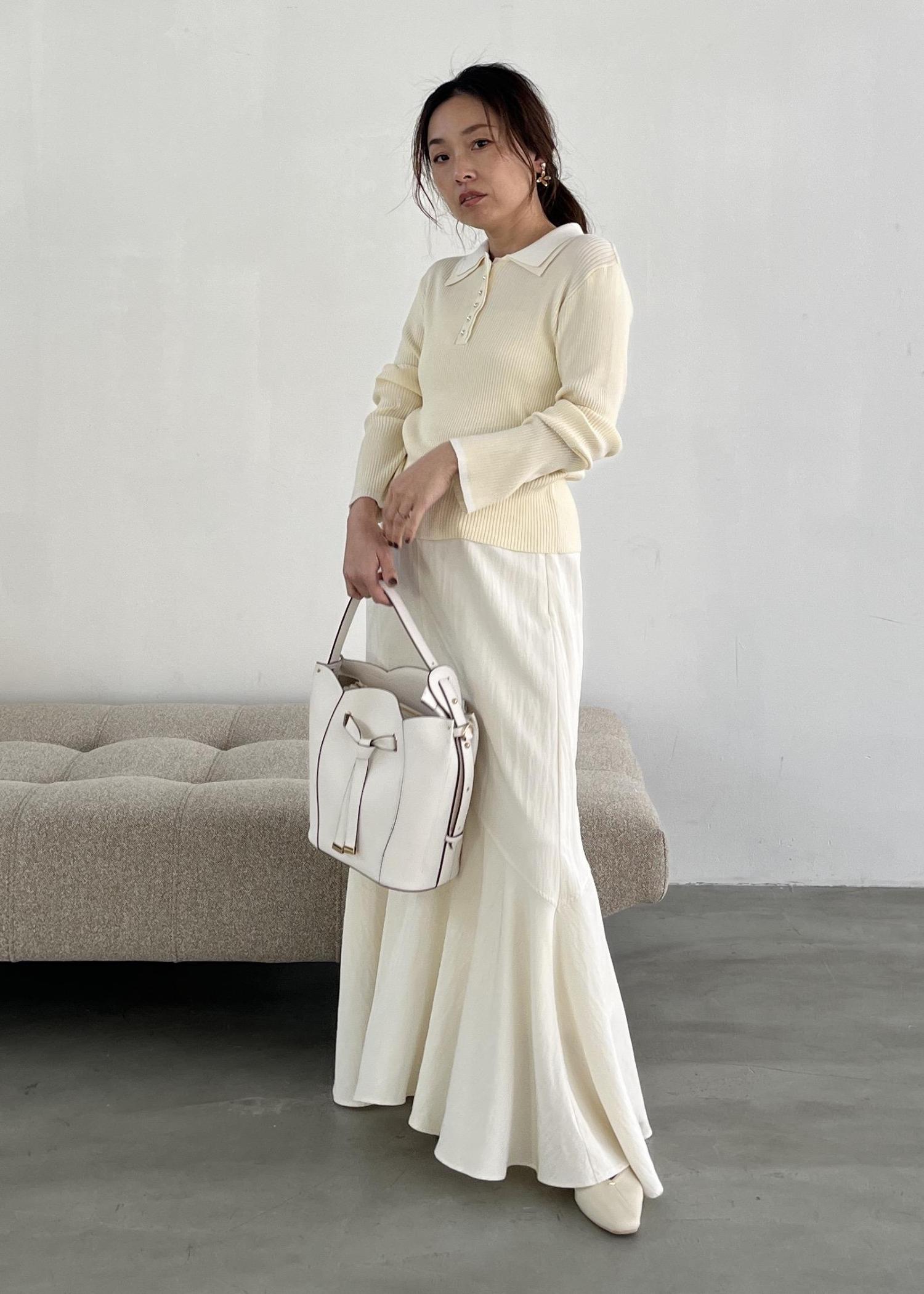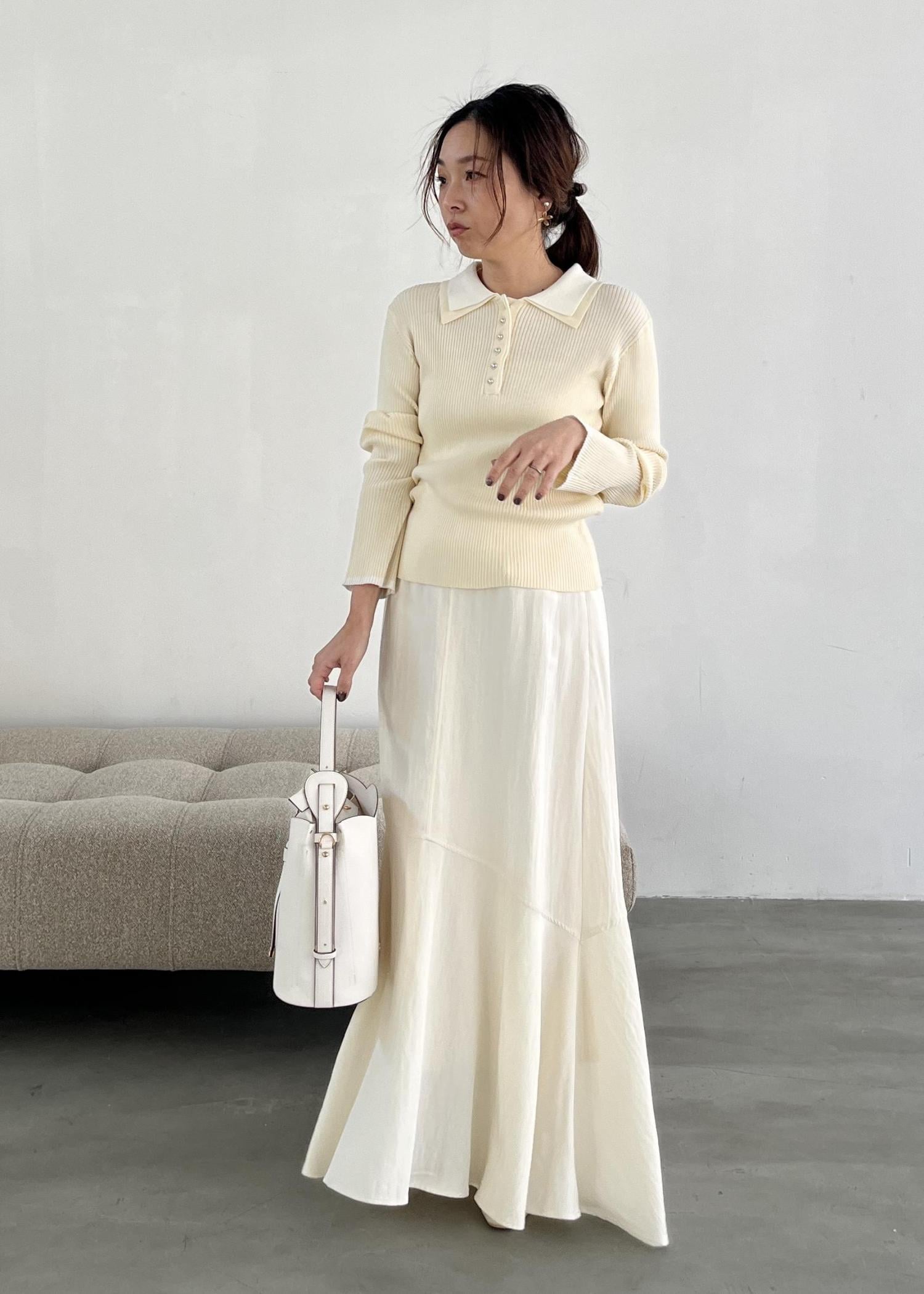 VISダブルカラーポロニットトップスオフホワイト / F¥5,489レビュー152cmでFサイズ着用し、着丈は腰にかかるくらいの丈。程よく身体にフィットしてくれるコンパクトなサイズ感。収縮性もありとっても柔らかいので肌あたり優しく着心地◎大人気トップスのアップデート版です。春まで着られるシャリ感のあるニットは上品見えも叶えてくれます。フレア袖なのも女性らしく着られるポイントです。