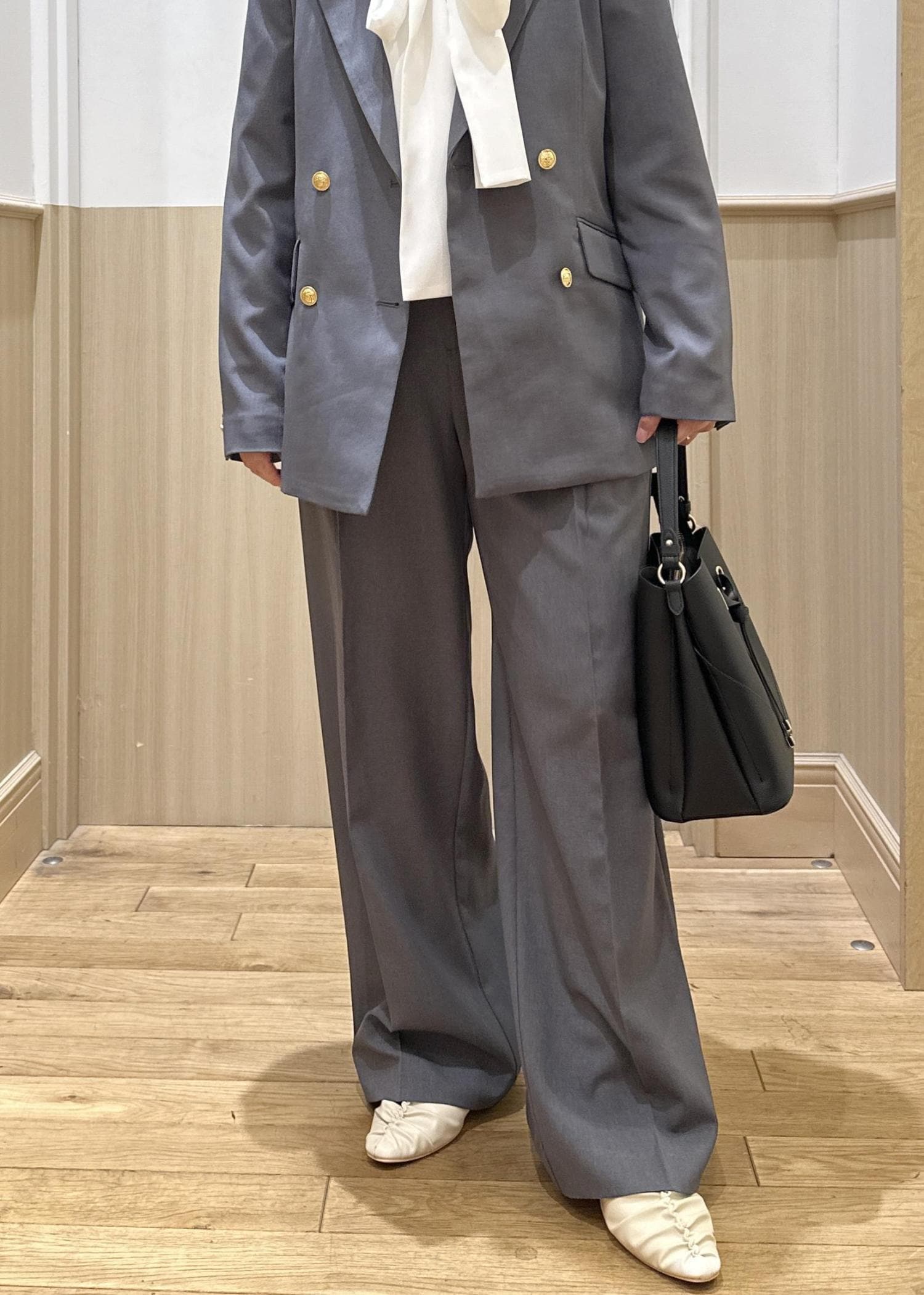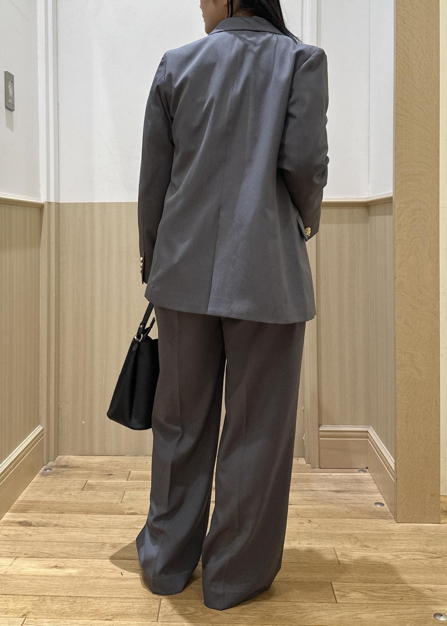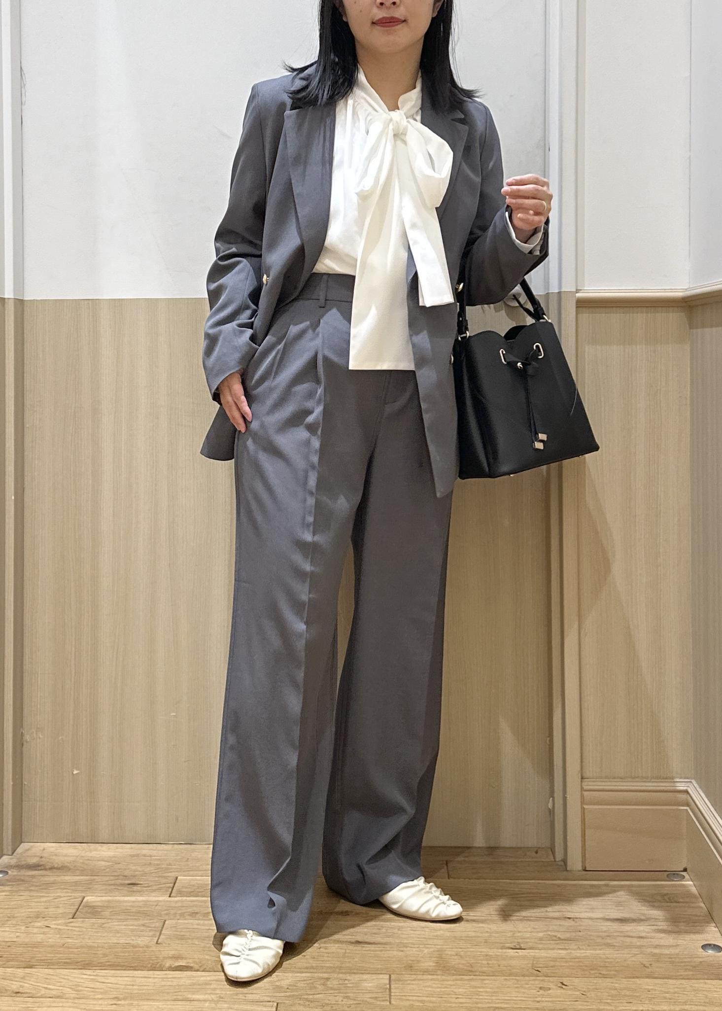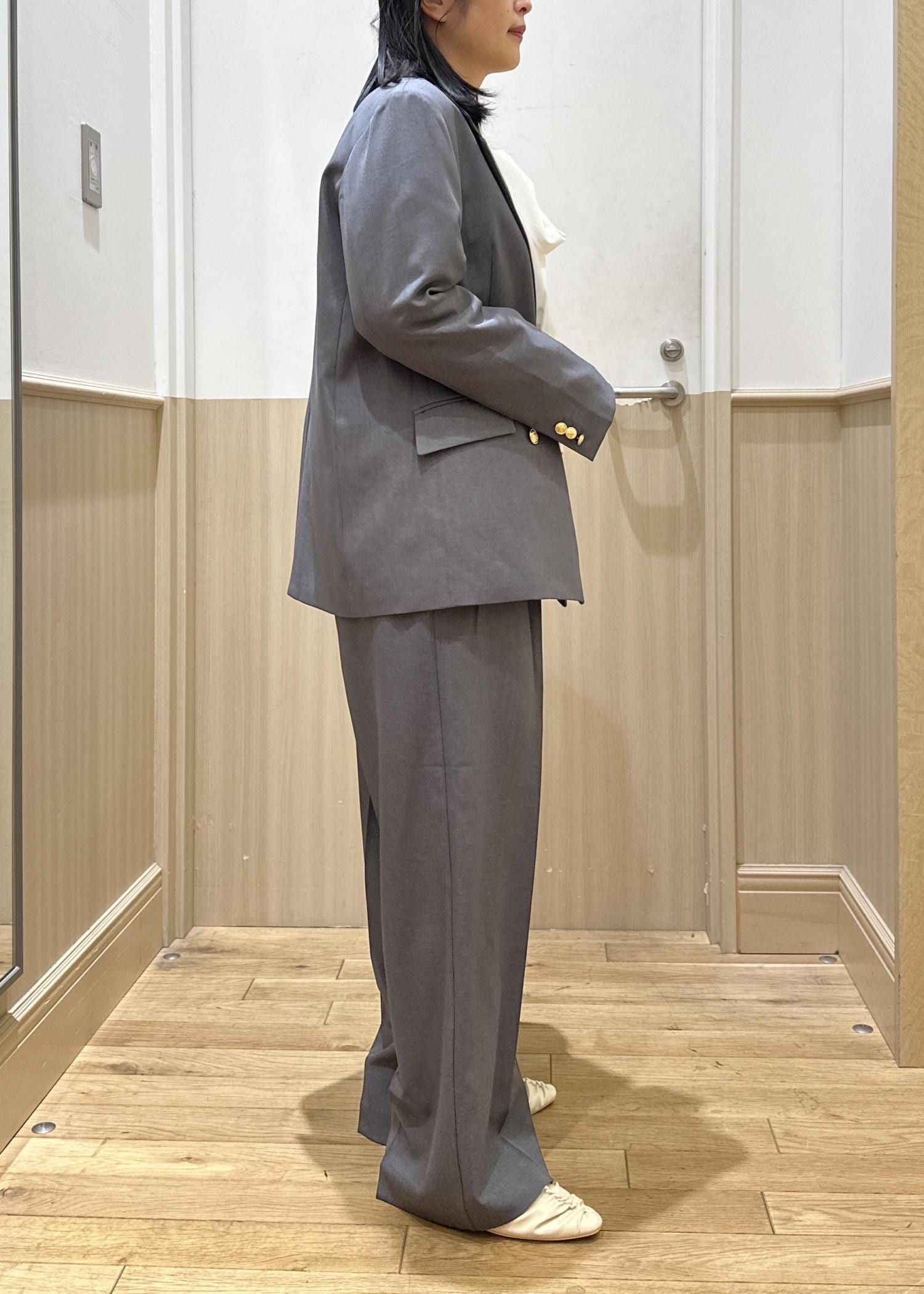 グレーはほんのりと光沢感があり、きちんと見えする素材感。とても軽く、肩周りなどは特にストレスフリーで着心地よかったです。