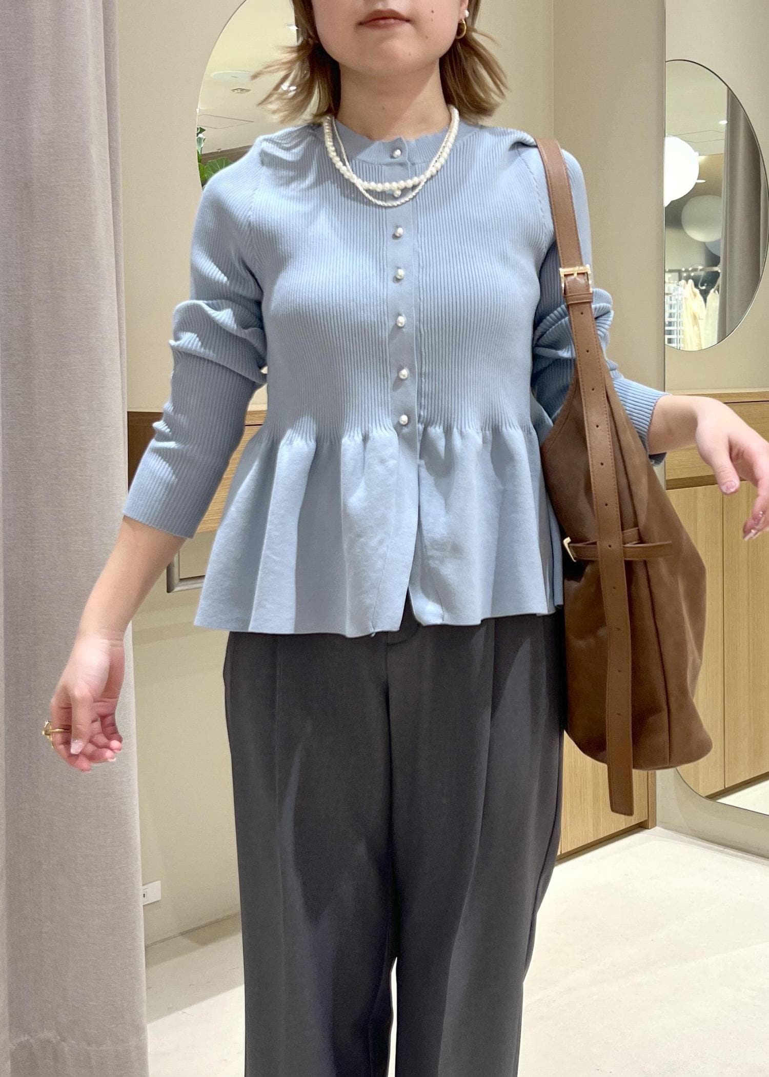 VIS【美得】ペプラムニットカーディガン/イージーケアサックス / F¥5,929レビュー生地は少し張り感のあるアンチピリング素材で、伸縮性があります。程よいゆとりがあるので、とても着やすいです◎
