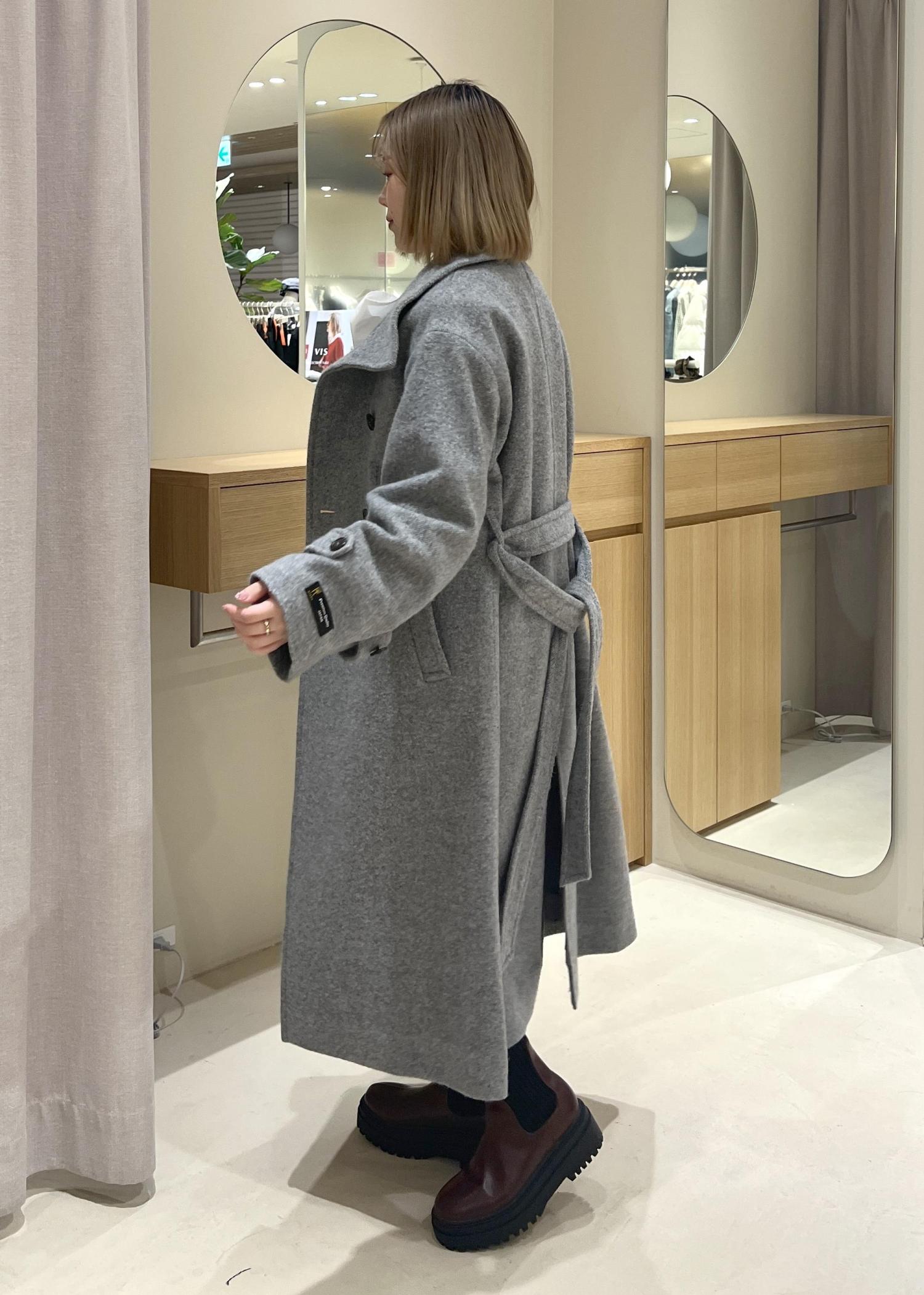 155cmで、膝が隠れる(膝下10cm)くらいの長さです。パンツでもスカートでも使いやすい丈感です! -