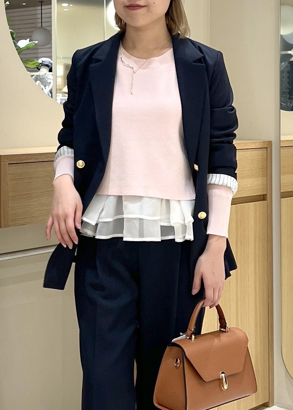 きっちり感のあるネイビーと華やかなピンクを合わせた
