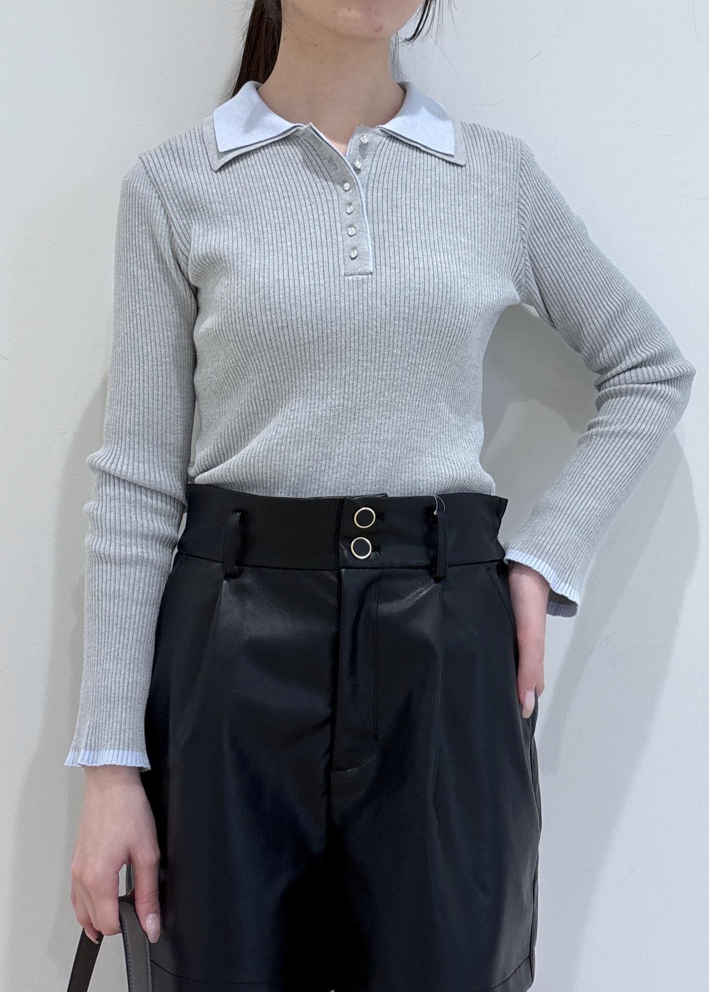 ダブルカラーがポイントのトップスはボタンを1〜2個ほど開けるとカッチリしすぎず抜け感が出せます◎
