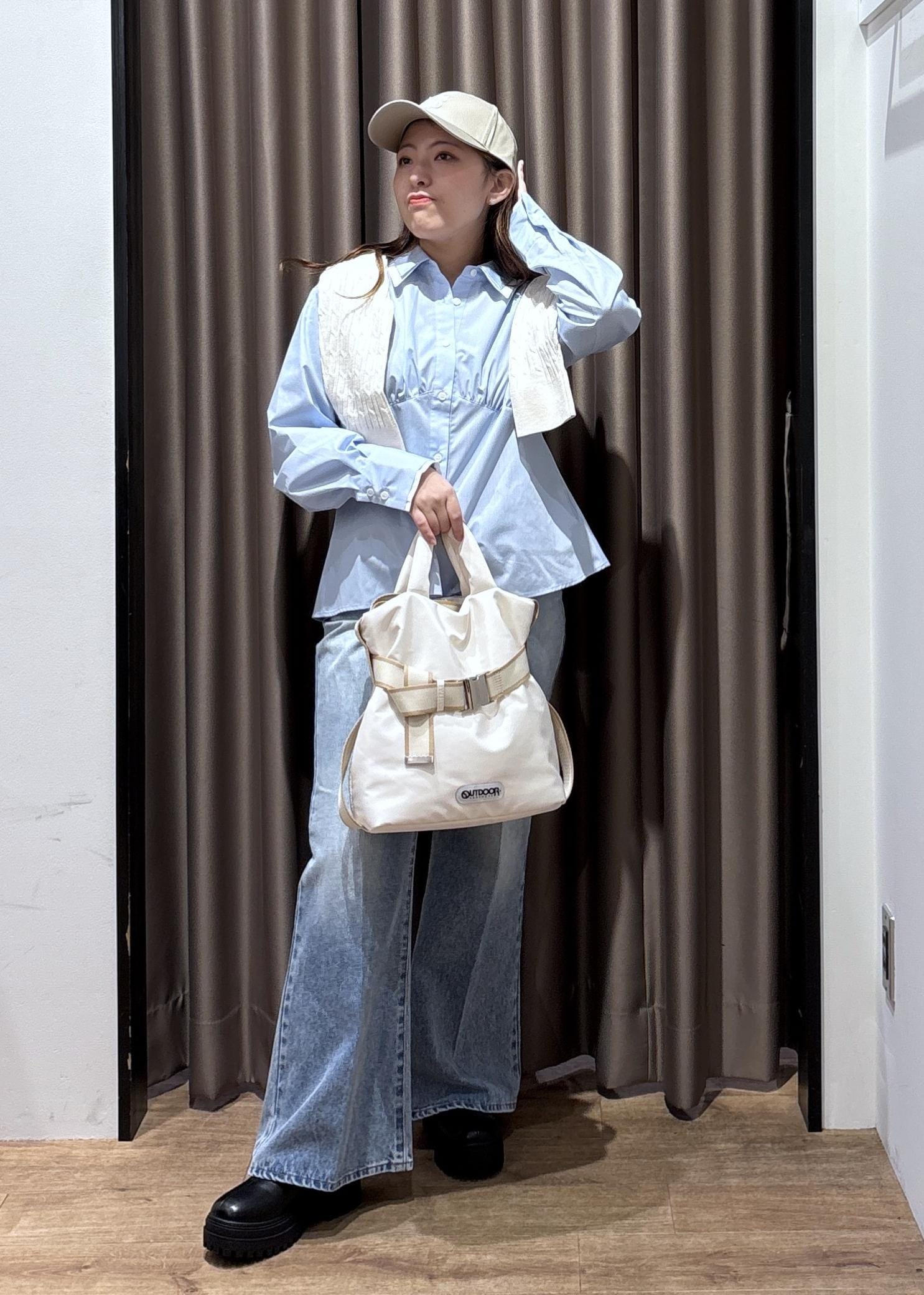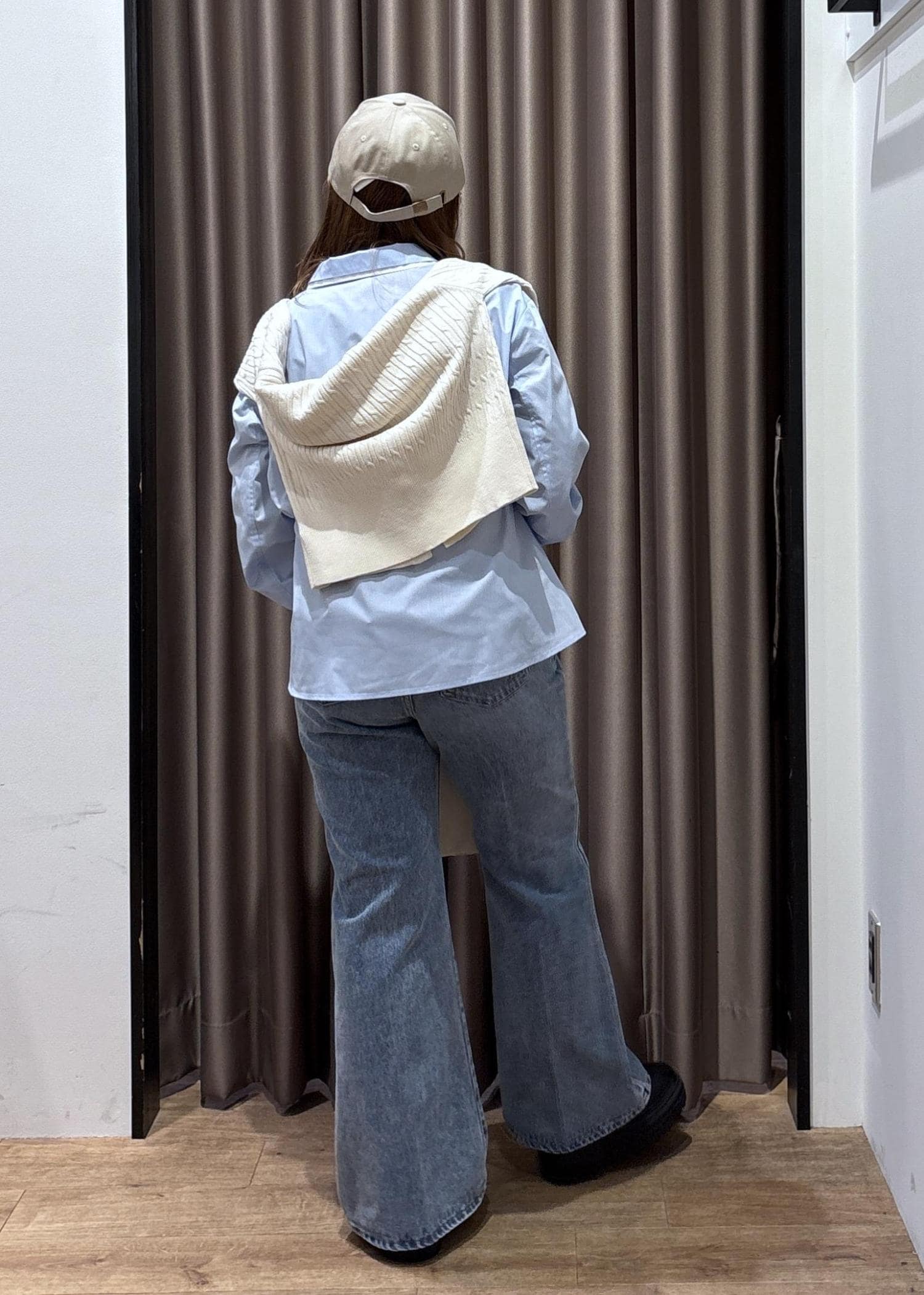 VISフレアシルエットデニムパンツサックス / M¥8,899レビュー153cmMサイズ着用少し厚みのあるパンプスを履いて床につかない丈感です!