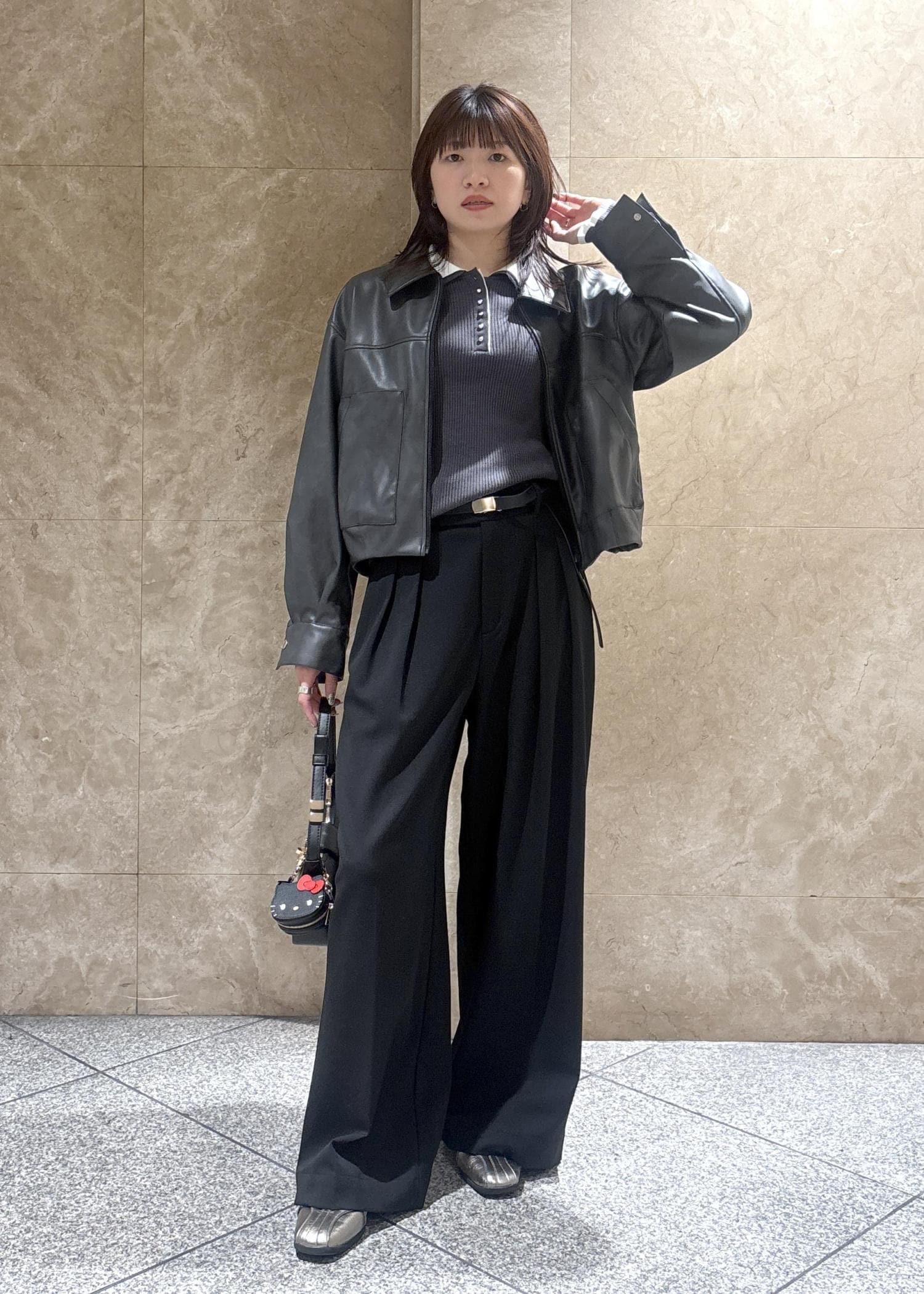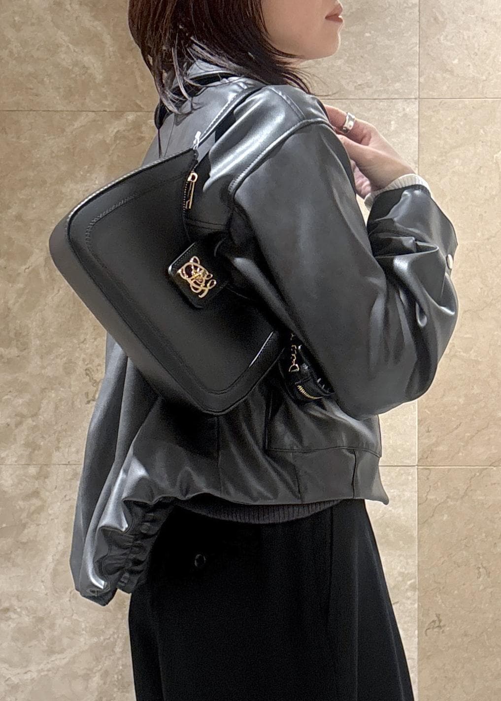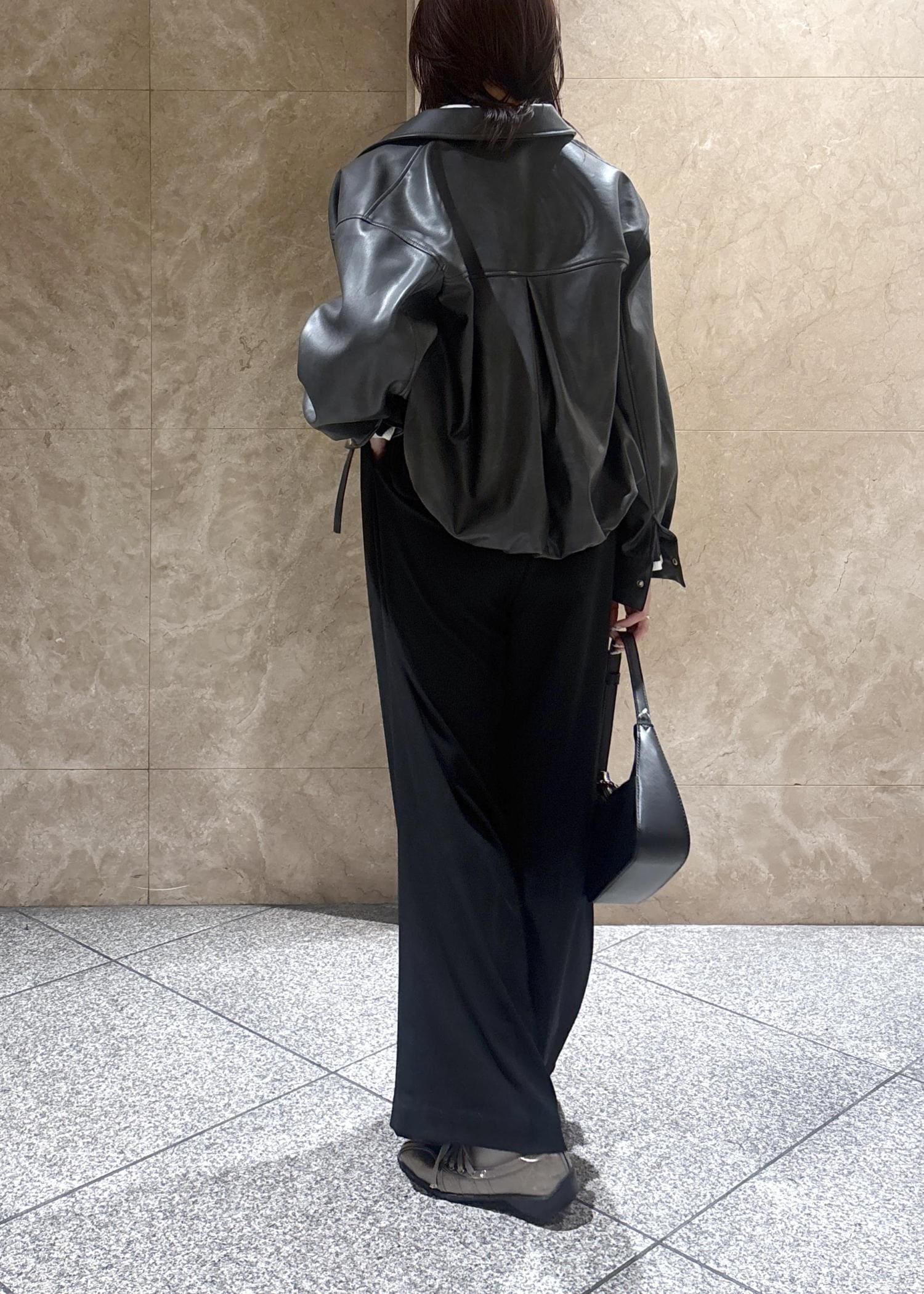 VISアウトポケット合皮ブルゾンブラック / F¥10,989レビューコンパクトなサイズ感ですが、脇周りや身幅にはある程度ゆとりがあり、厚みのあるニットの上からでも羽織りやすいです。