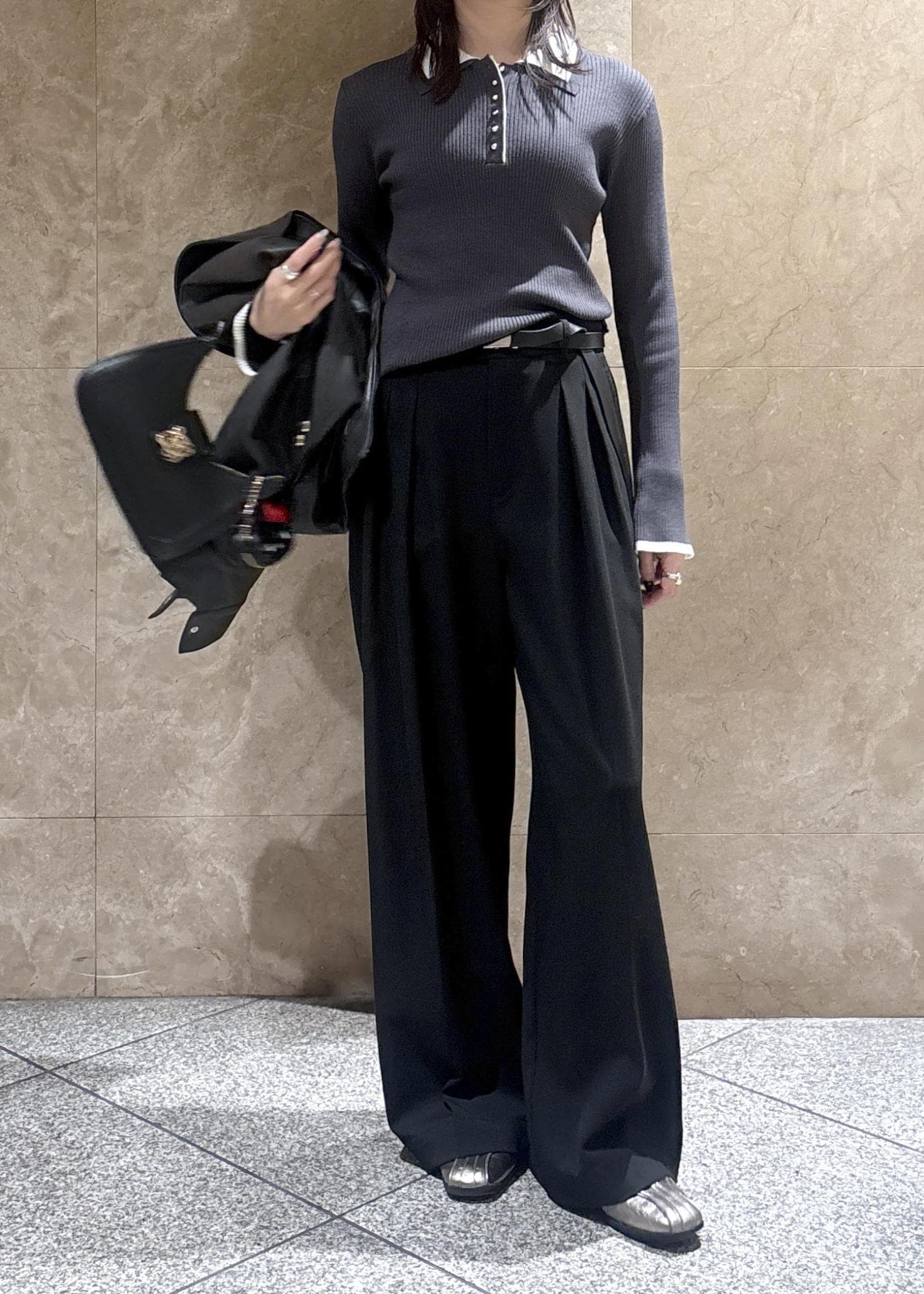 VISダブルカラーポロニットトップスチャコール / F¥5,489レビューさらりとした質感で、程よくとろみもあり、ボディラインがスッキリ見える素材感です。