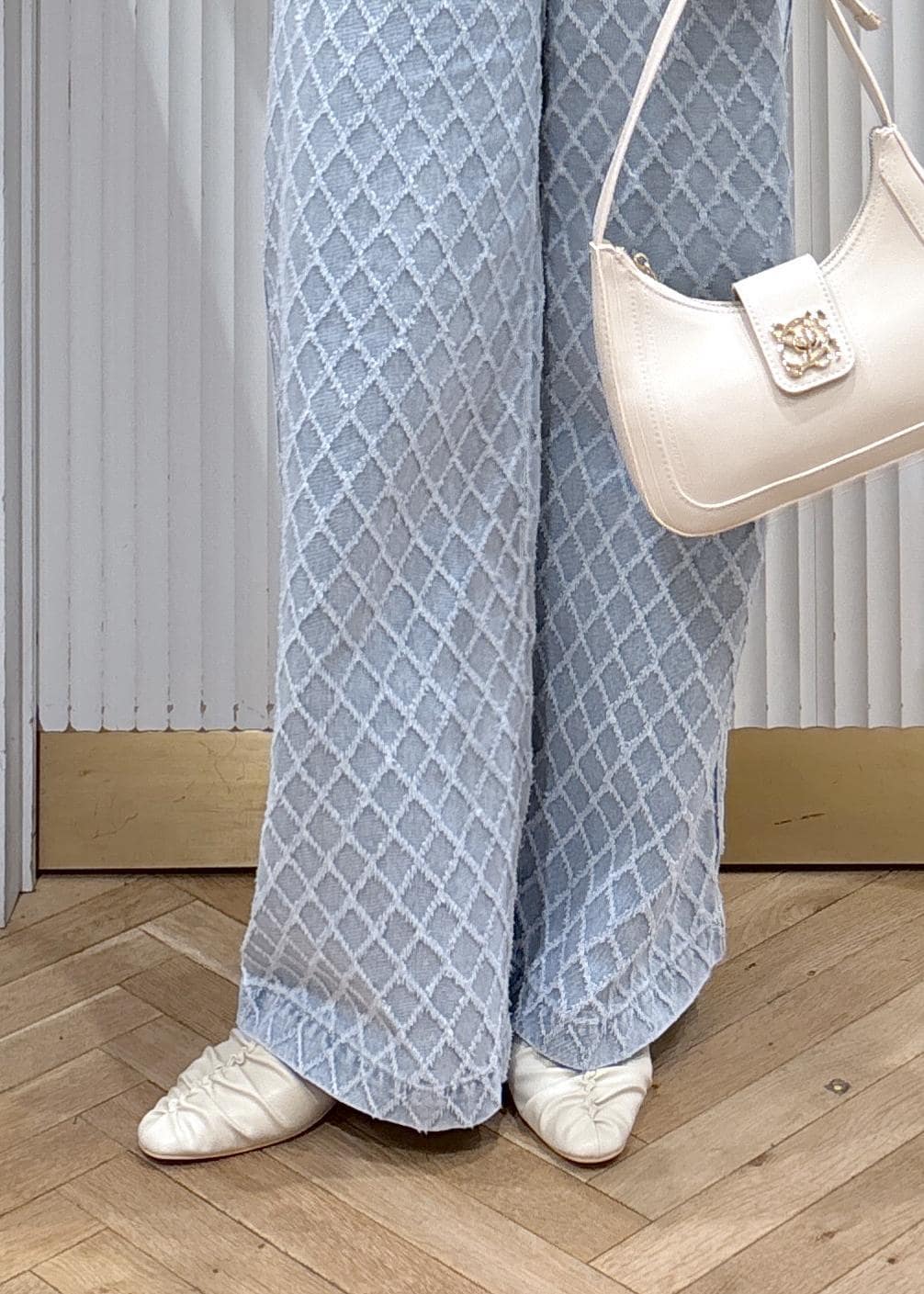 持ち手の部分がリボンになっていて、肩にかけるとちょうど見えてアクセントに!