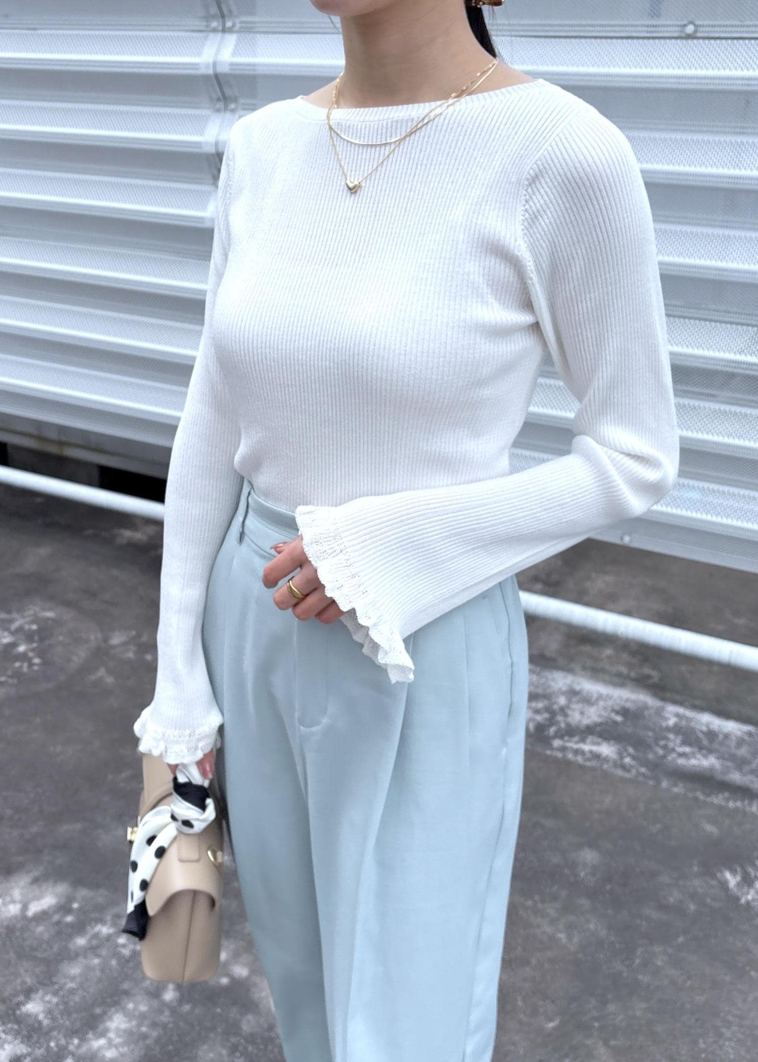 VIS袖口レース編みニットプルオーバーオフホワイト / F¥4,389レビュー薄手のニット素材でスッキリ着れました!