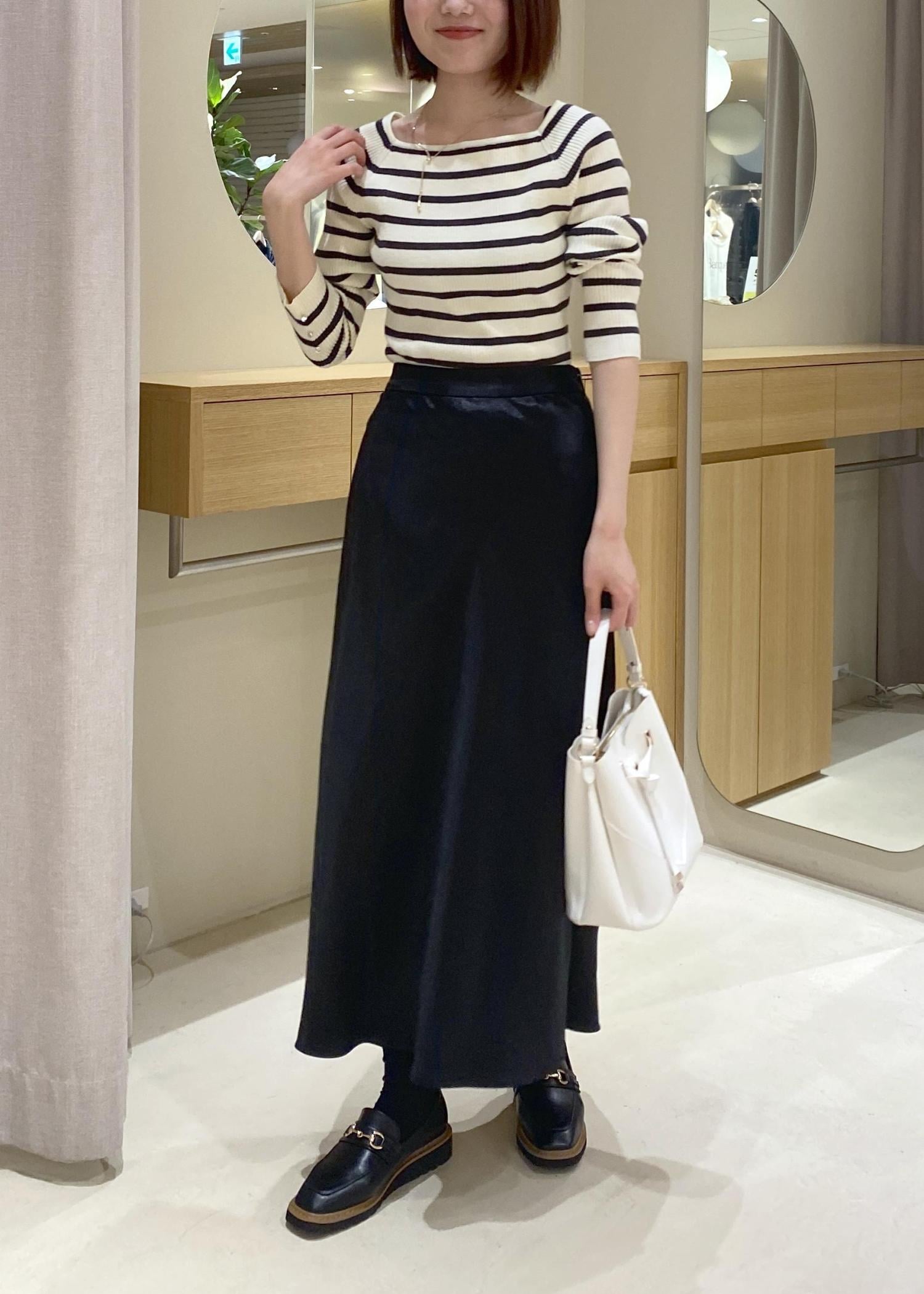 VISシャイニーナローフレアスカートブラック / F¥6,589レビュー光沢感のあるフレアスカートです。