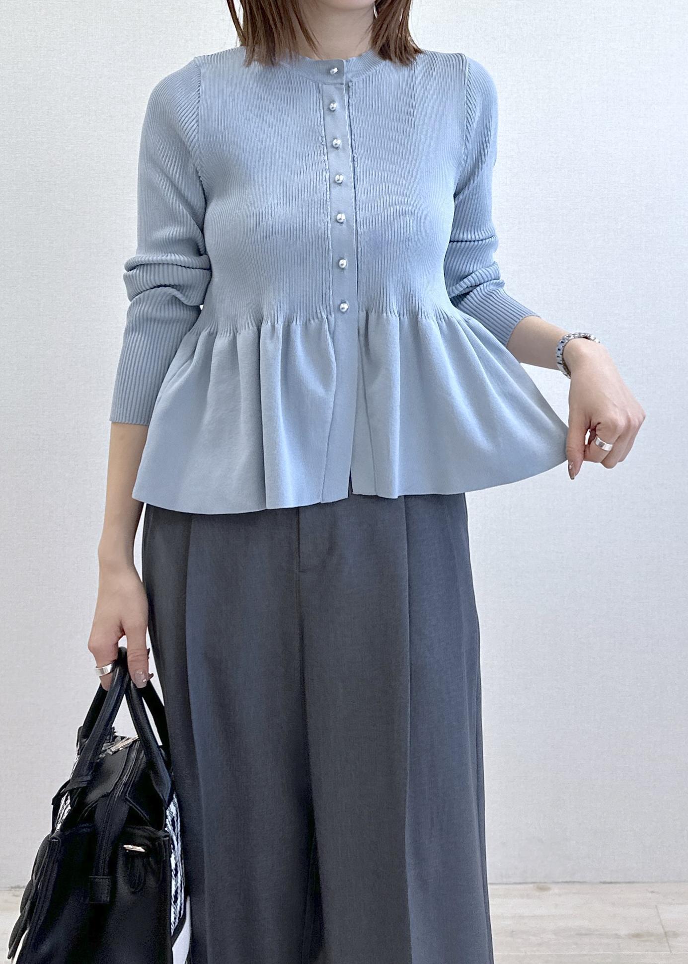 VIS【美得】ペプラムニットカーディガン/イージーケアサックス / F¥5,929レビューもちっとした柔らかい素材で着心地の良いペプラムカーデ。前開きなので羽織りとしてもお使いいただけます◎
