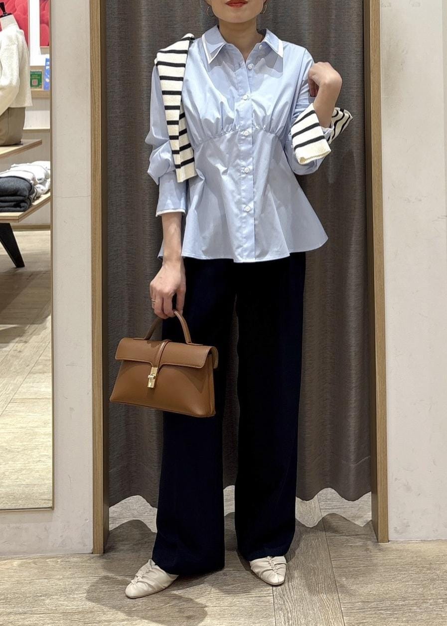アンダーバスト辺りからの切り替えで、視線が上に集まり脚長効果、お腹から腰周りを自然にカバーしてくれて、ワイドパンツと合わせてもスッキリ見えました。 -