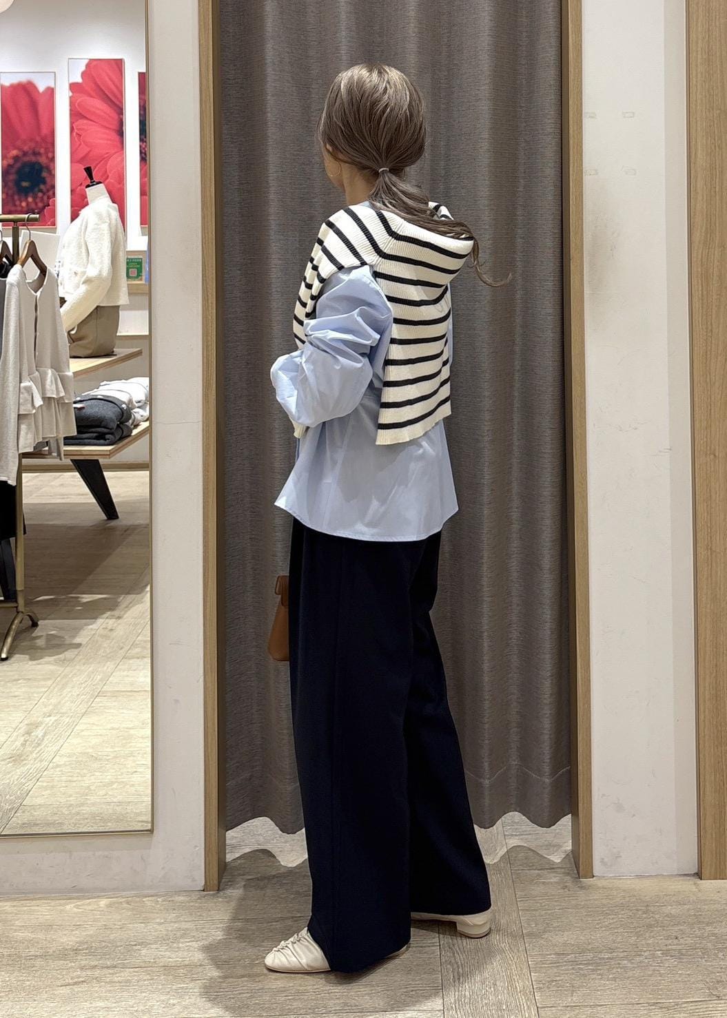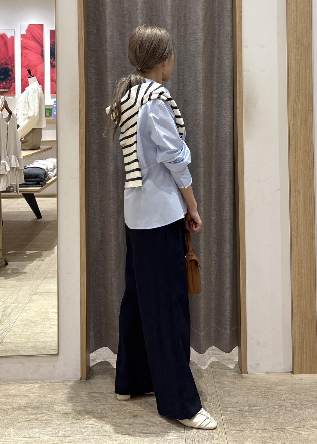 骨格ストレートなので、ワイドパンツは苦手ですが、横に広がらず、ストレートなシルエット、サラっと落ち感のある生地で挑戦出来ました。