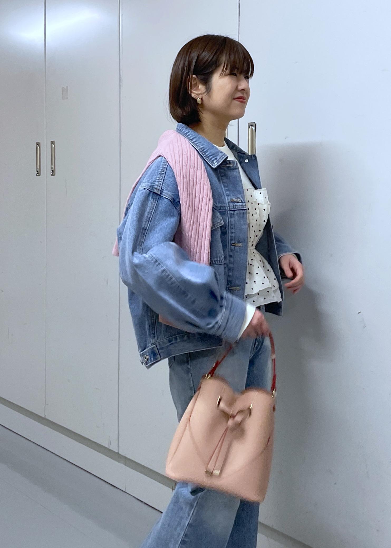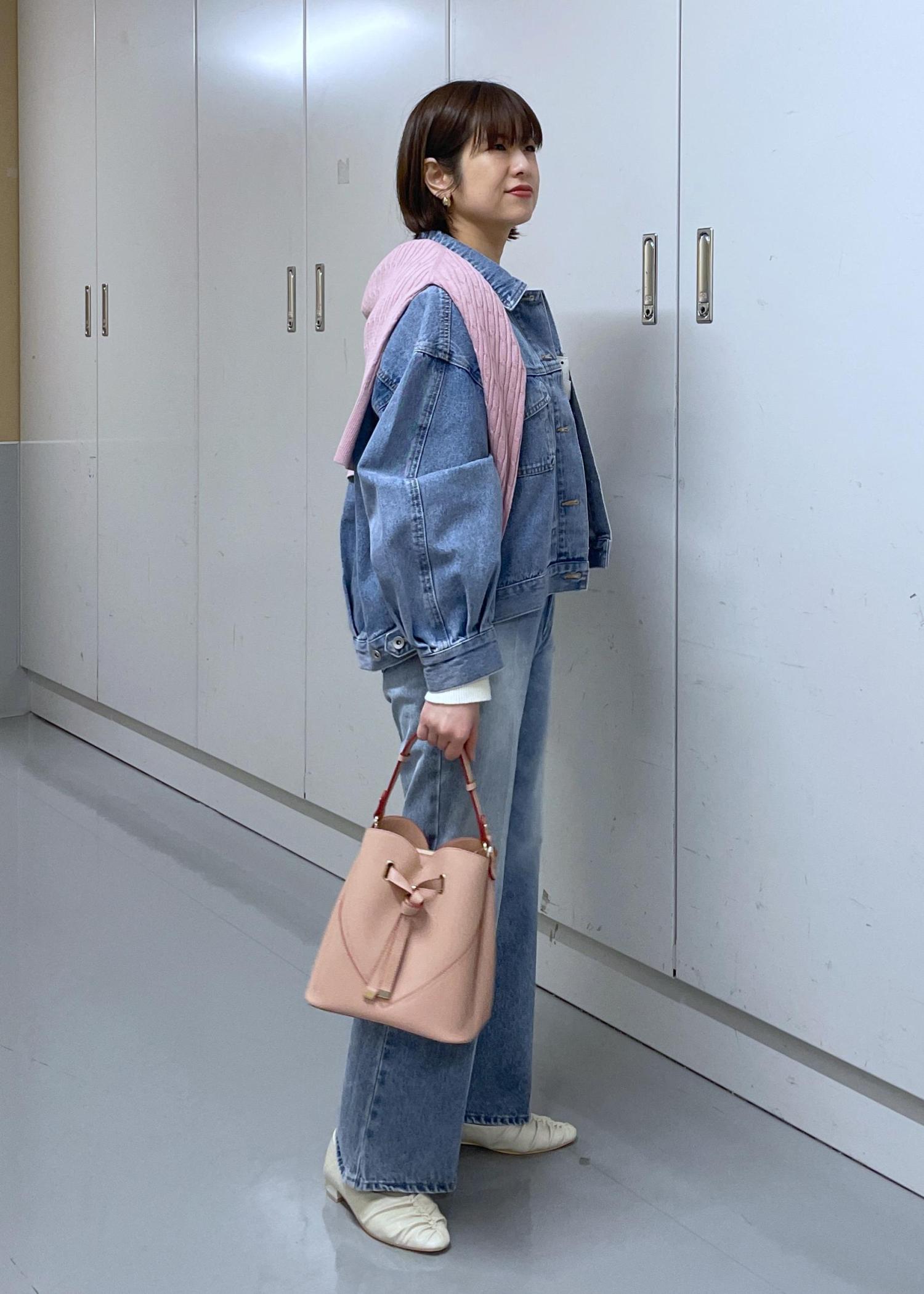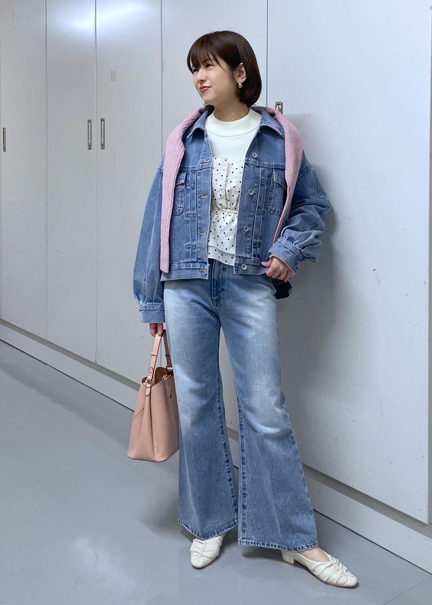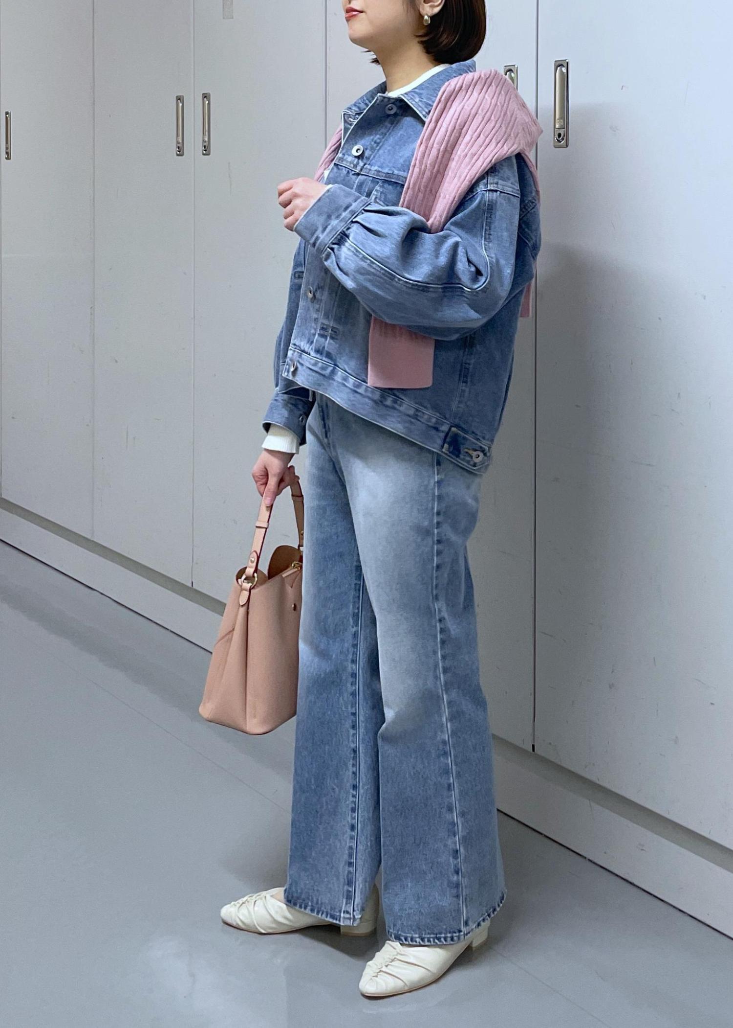 身長156cmで腰丈のコンパクトな着丈なので、小柄さんもバランスよく着やすいです。