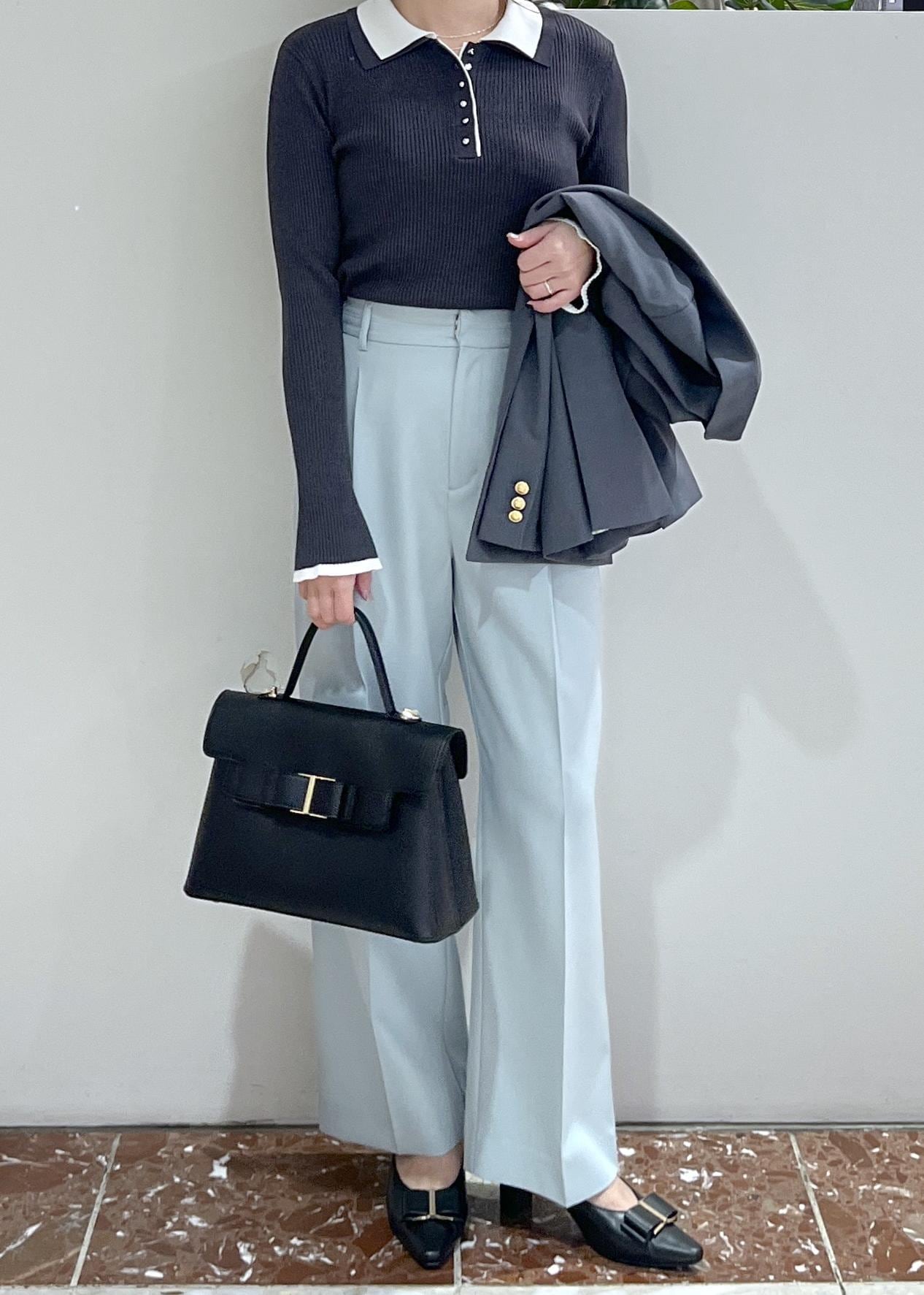 VISダブルカラーポロニットトップスチャコール / F¥5,489レビュー2枚襟デザインのトップスです。小さめのボタンもポイントになり顔まわりを華やかにしてくれます。