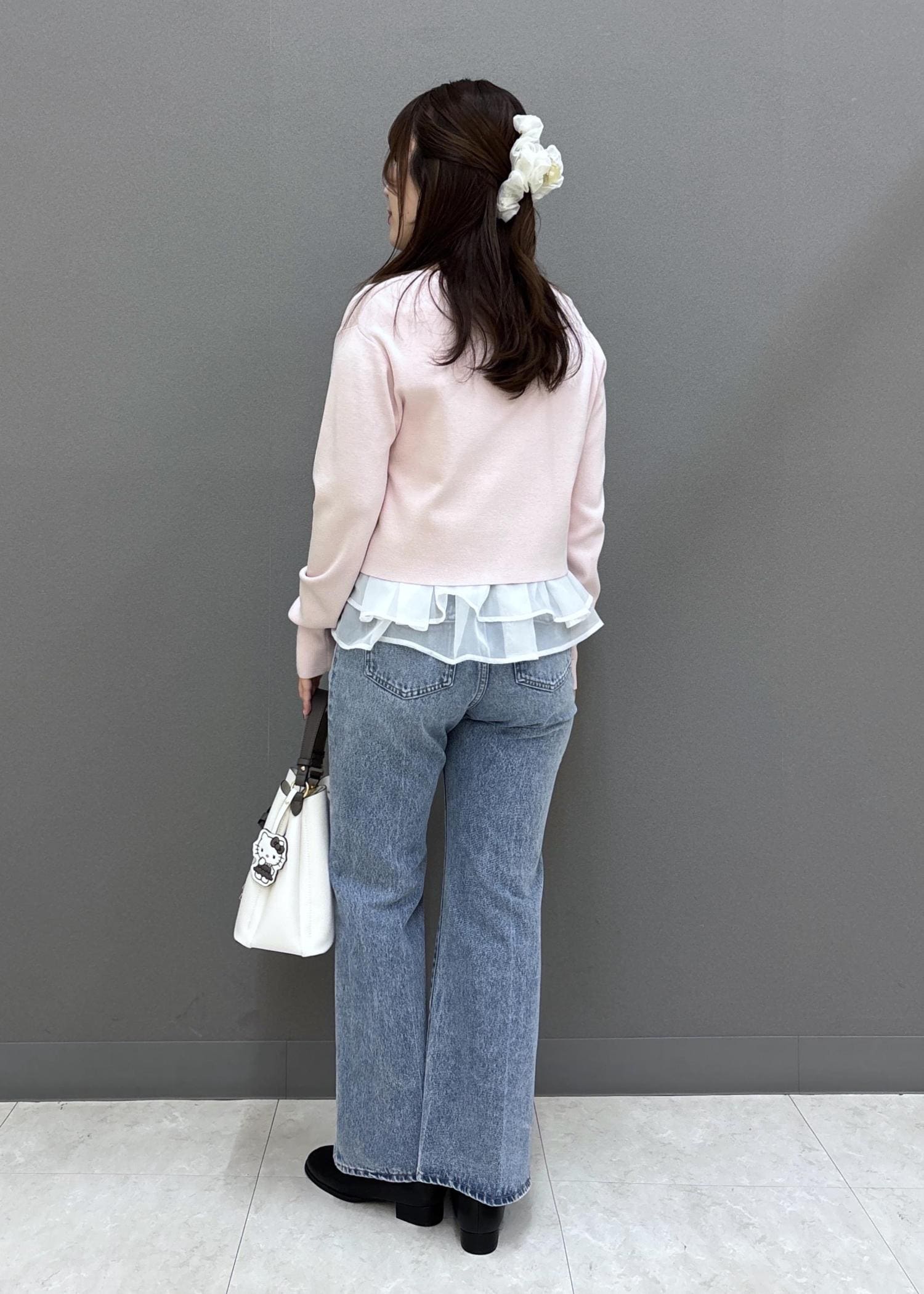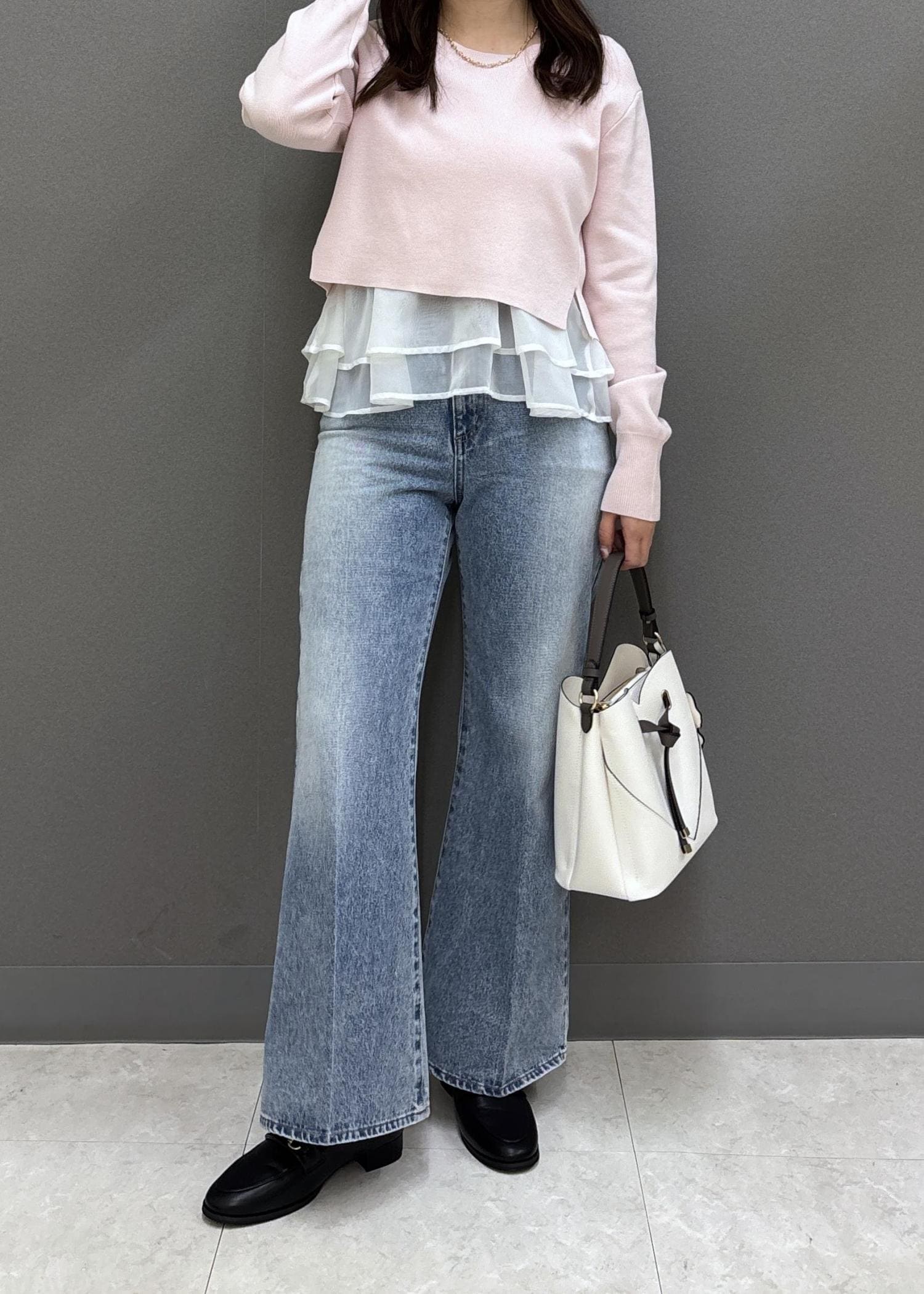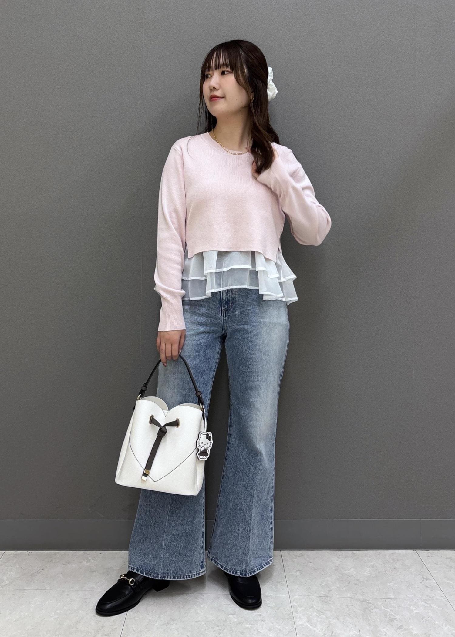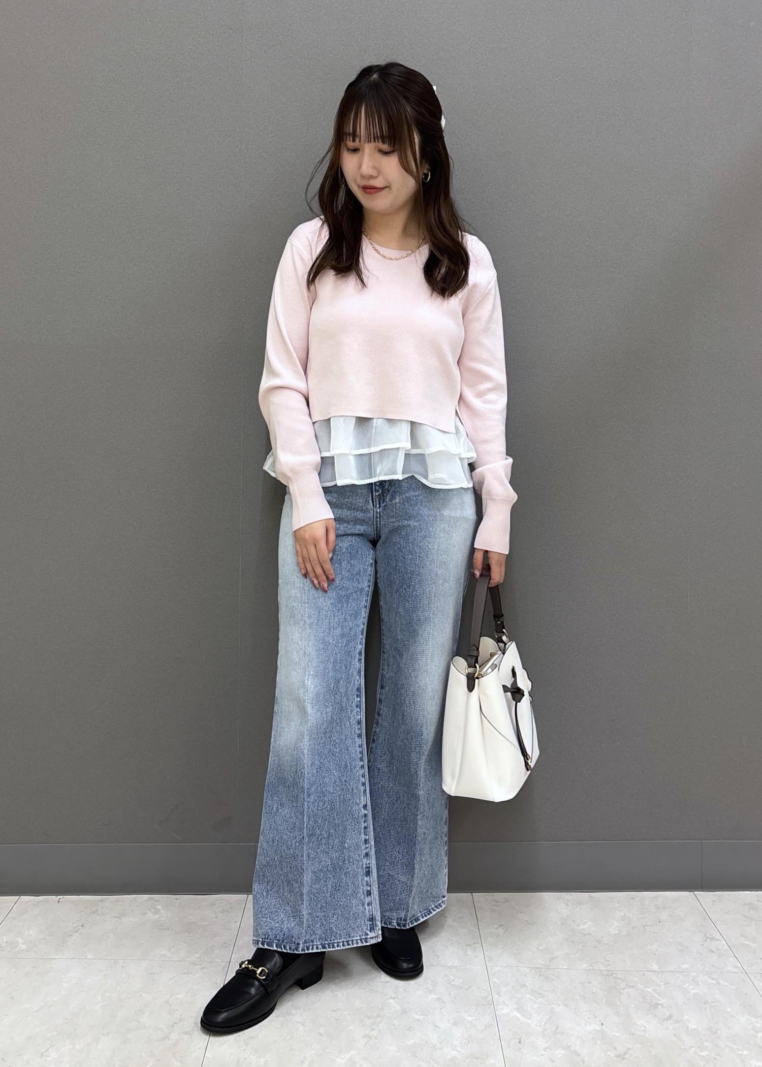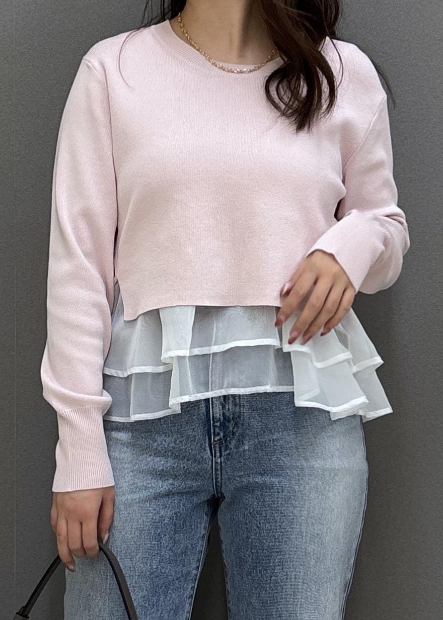 【美得】ペプラムオーガンジードッキングニットプルオーバー