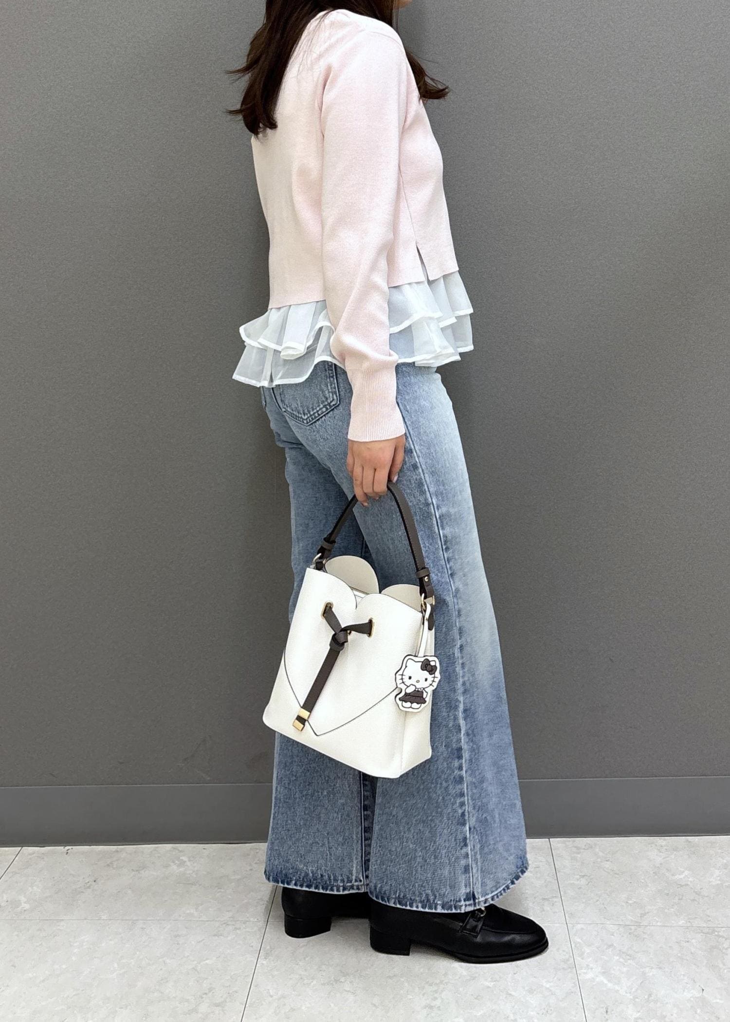 大人気のハートカットバッグ×ハローキティとのコラボレーションアイテムが登場!長財布や500mlのペットボトルが入るので、実用性抜群です!気分に合わせて、斜めがけや肩がけもできます♩