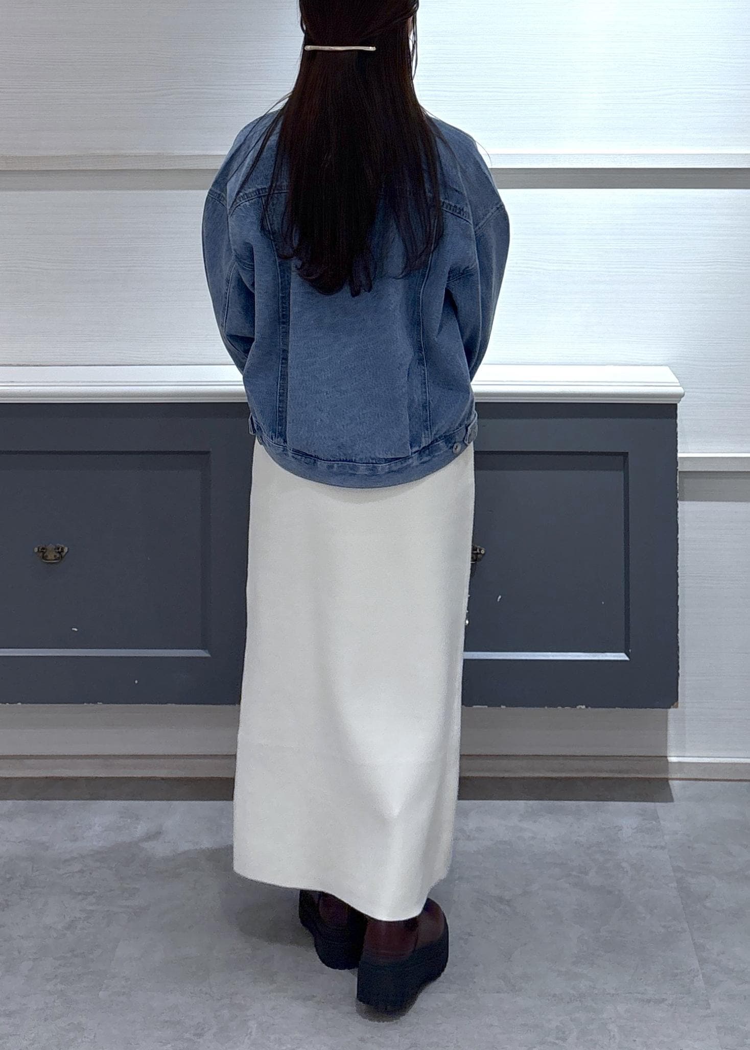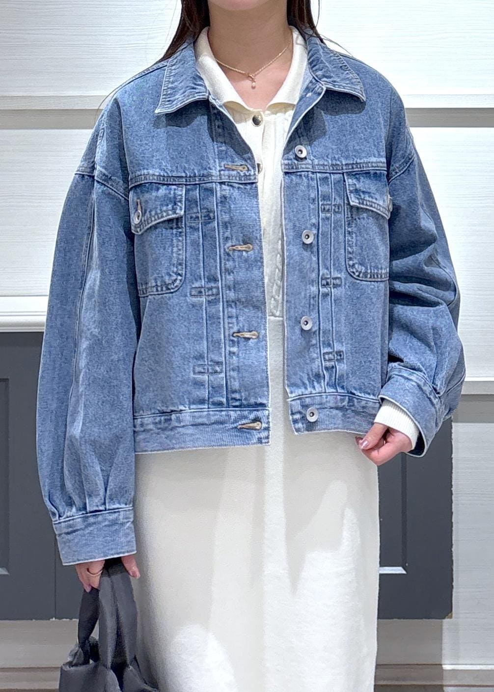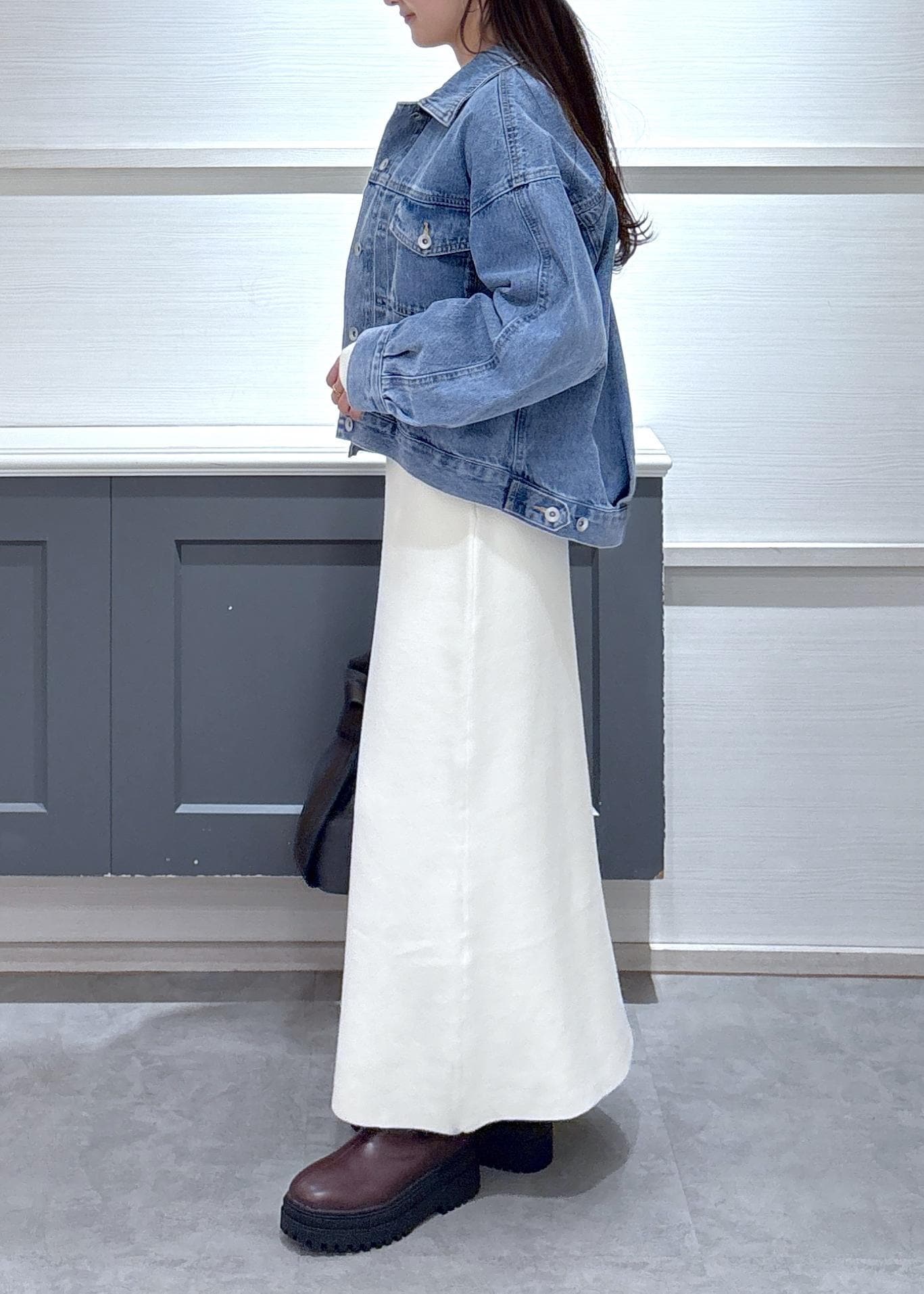 デニムジャケット×ワンピースでキレイめカジュアルなお出かけコーデにしました!