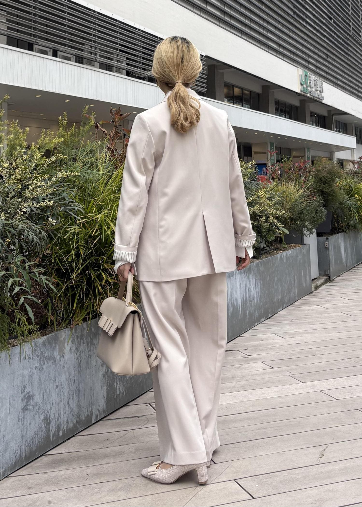 靴も同系色の方が縦のラインが伸びるのでよりスタイルアップしてみえます。
