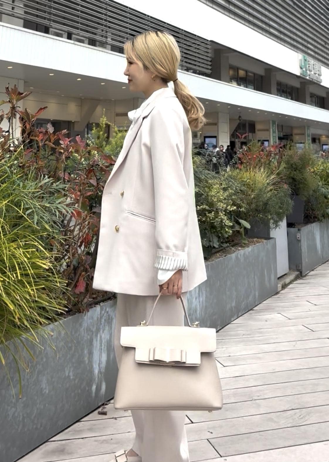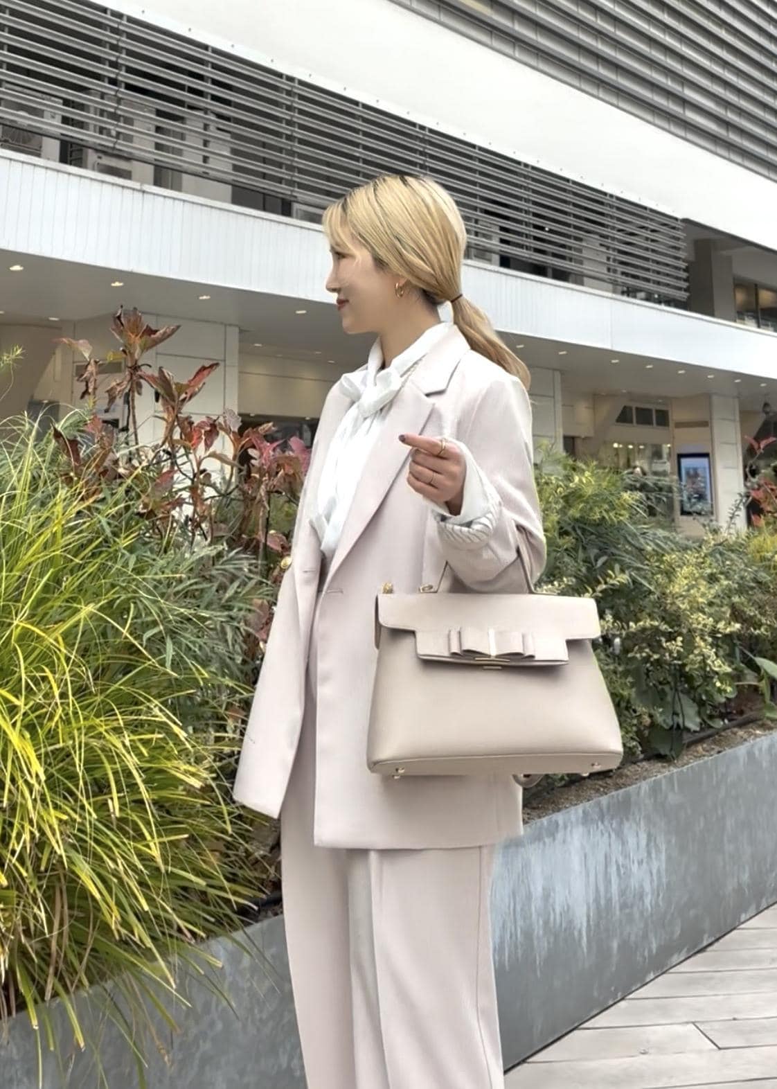 ホワイトカラーのセットアップはセレモニーにピッタリで