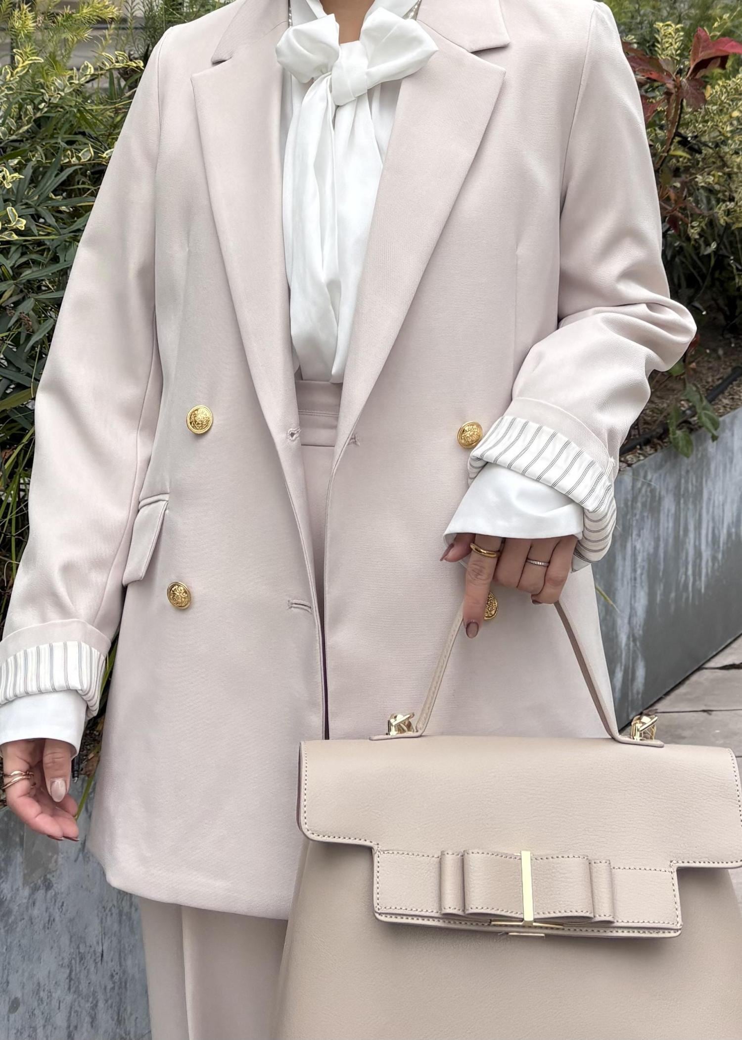 金釦がアクセントになってぱっと華やかな印象に。