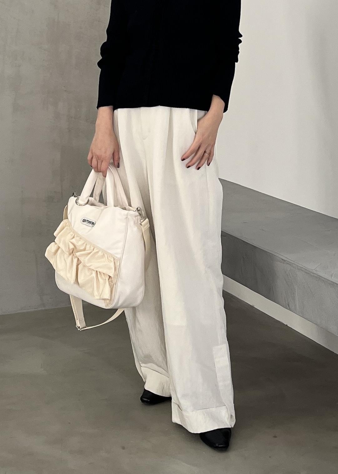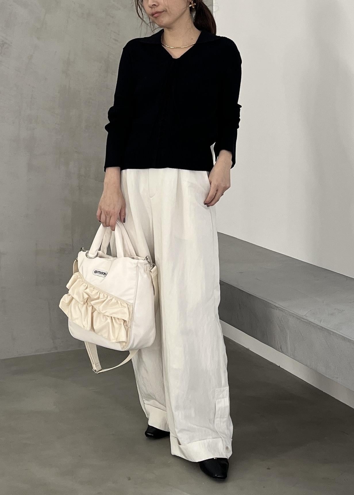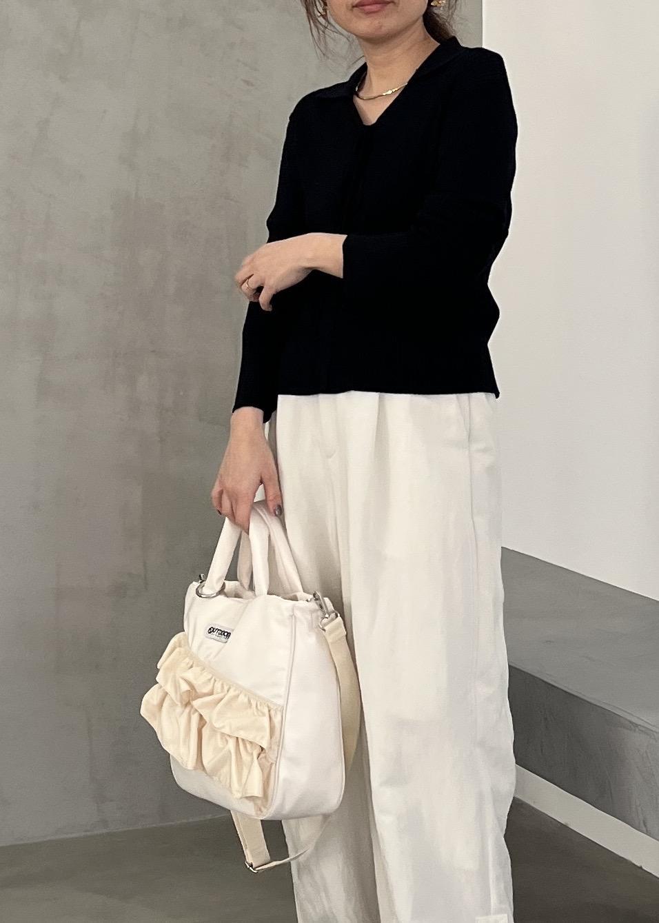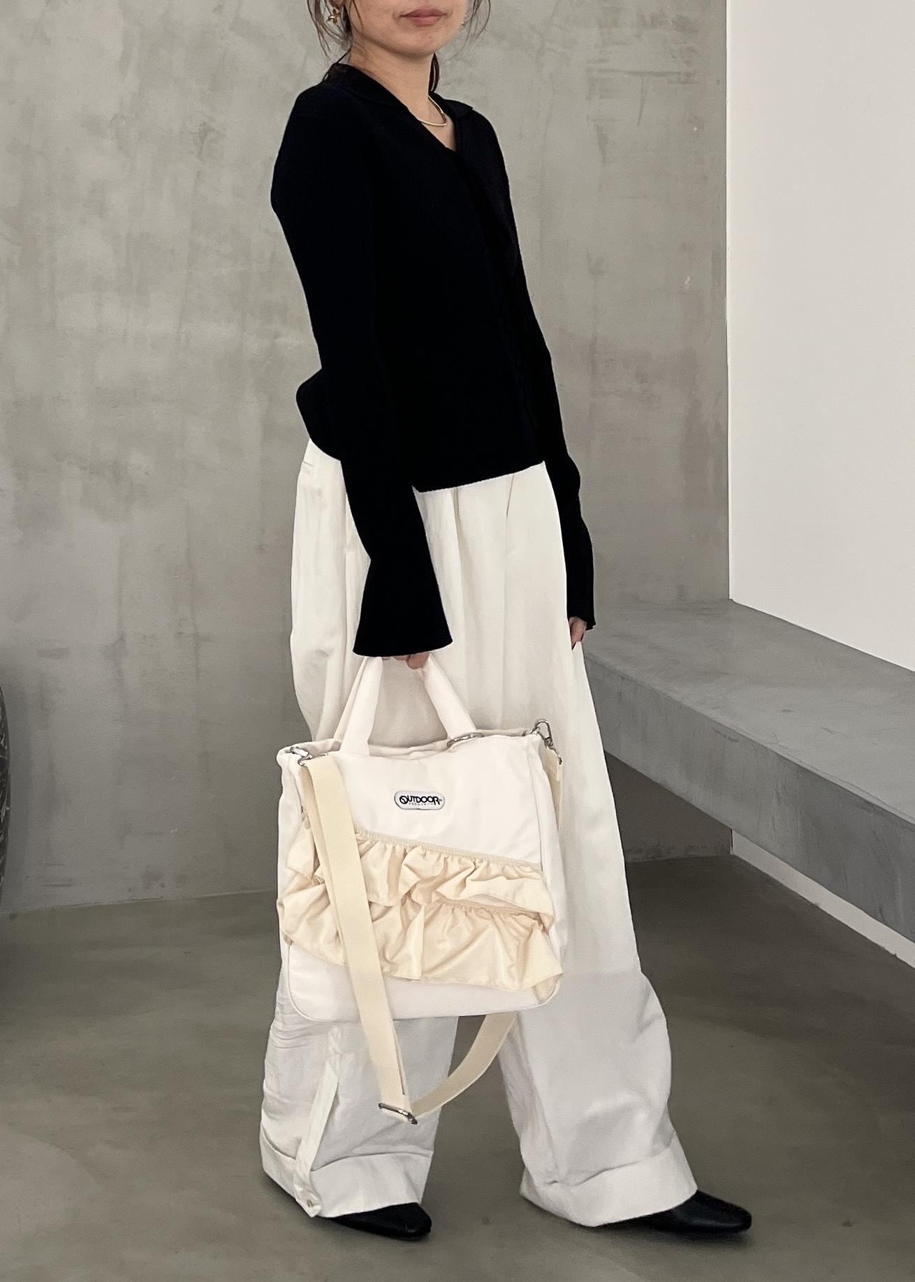 VIS【OUTDOOR PRODUCTS】VIS別注2WAYフリルトートバッグキナリ / F¥8,580レビューoutdoorとのコラボバッグです。フロントのフリルがとっても可愛い!持つだけでコーディネートのポイントになります。ペットボトル、長財布、ポーチなどなどしっかり入れられます。大きすぎることなくほどよいサイズ感で◎小柄さんでもバランスよく待てます。