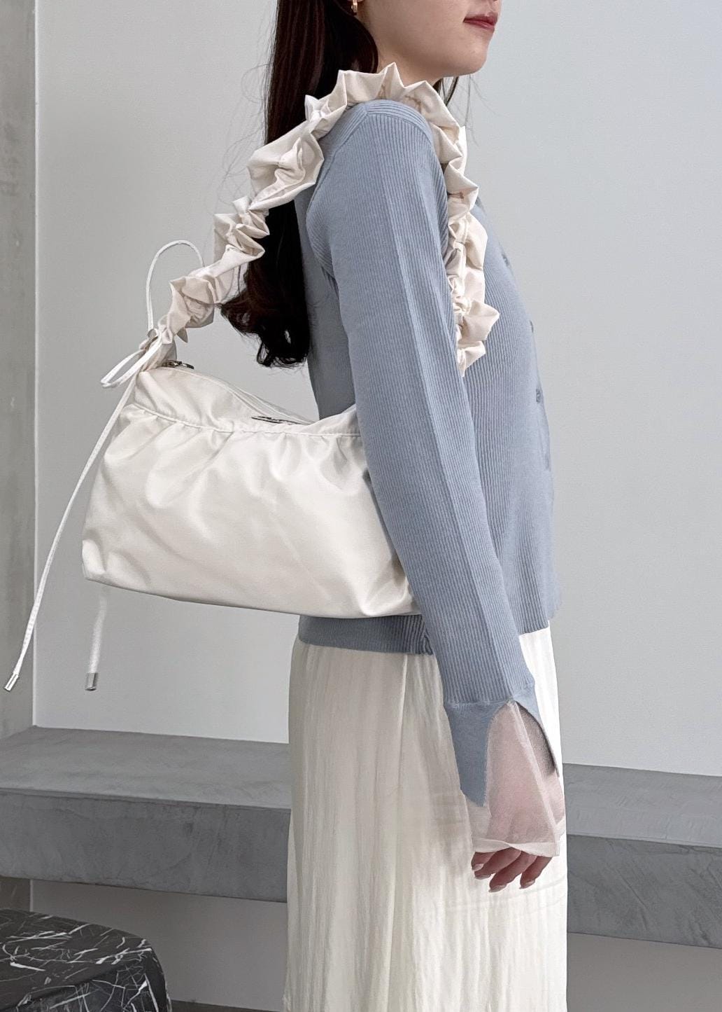 フリルのショルダーが可愛い!お出かけサイズにぴったりなバッグ◎