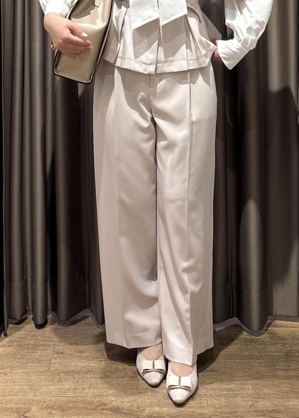 ストレートワイドパンツですとんと落ちてくれるので綺麗に見えます!